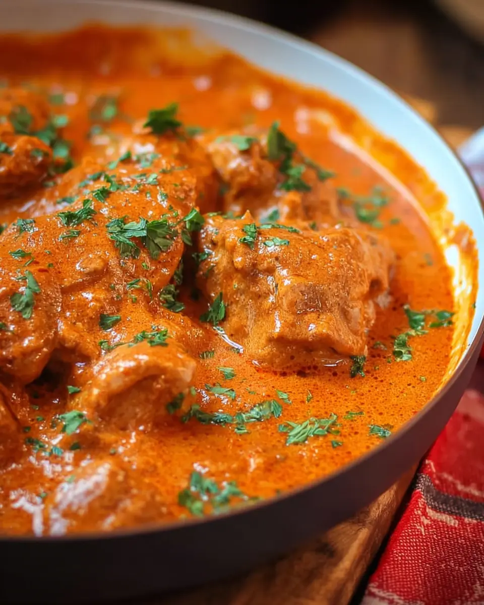 What makes Chicken Paprikash stand out is its versatility. While it’s traditionally served with nokedli—a type of dumpling similar to German spaetzle—you can pair it with wide noodles or rice for an equally satisfying experience. The dish’s beautiful bright red hue, courtesy of the paprika, not only pleases the eye but also hints at the depth of flavor waiting for you.