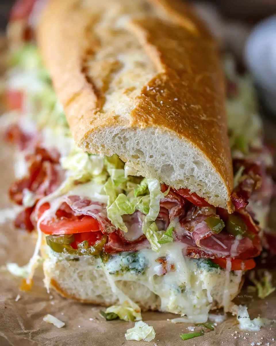 Start by preheating your oven to 350°F. For the bread, take an 18-inch French loaf and cut it horizontally. This is where all the magic happens! Lay both halves on a baking sheet with the open sides facing up. The bread serves as the perfect canvas for all the savory ingredients you’ll be layering on.