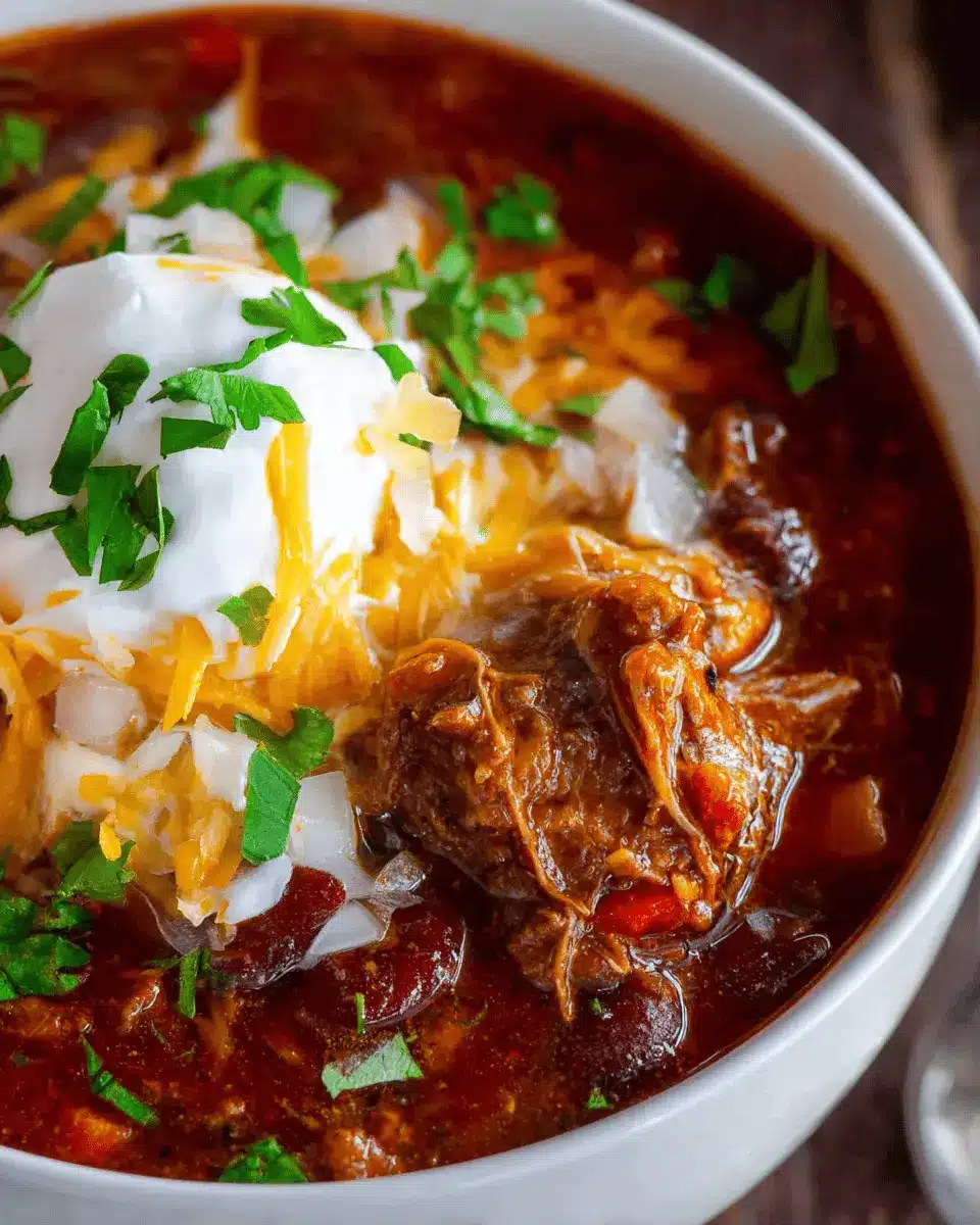 Elevate your best chili recipe ever experience with a variety of toppings! Consider adding a dollop of sour cream for creaminess, a generous sprinkle of shredded cheddar cheese for richness, or some finely chopped onions for that delightful crunch. Fresh cilantro adds a burst of flavor, while tortilla chips bring a satisfying crunch.