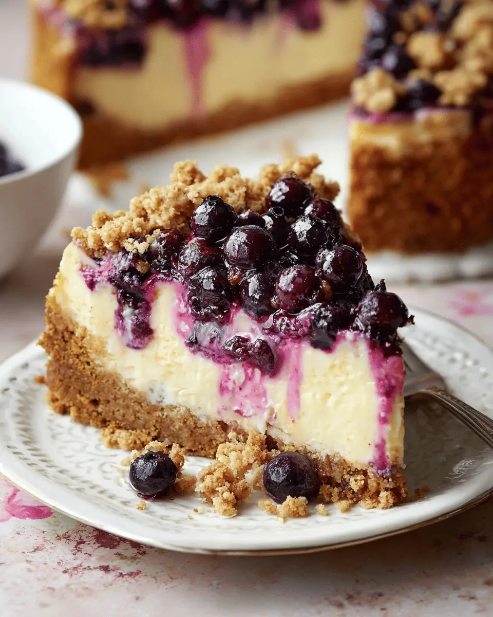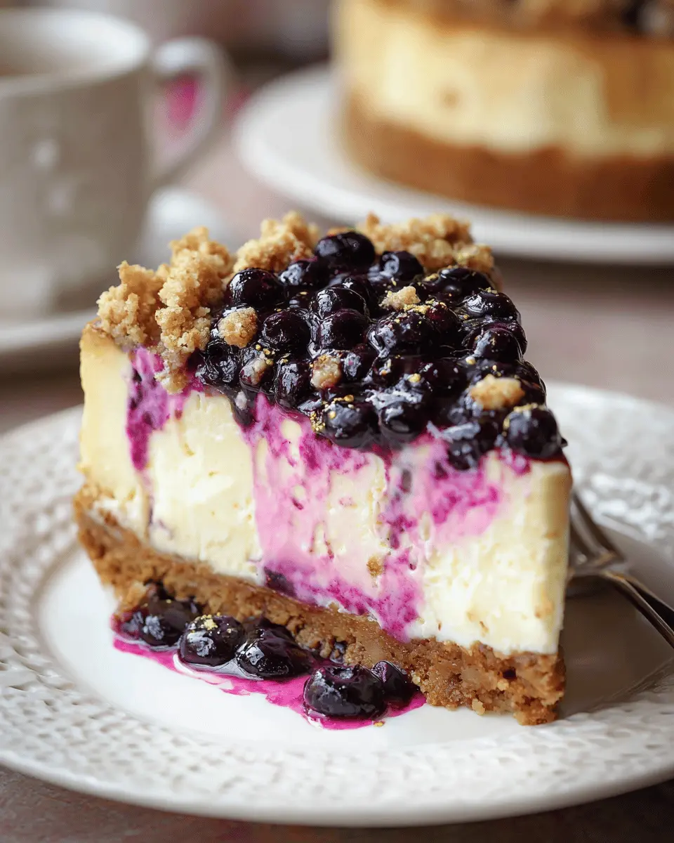 For a more refined taste, consider pairing it with a refreshing sparkling water or herbal tea—perfect for unwinding after a hectic week! Get ready to add this blueberry crumble cheesecake to your list of dessert favorites; you definitely won’t regret it!