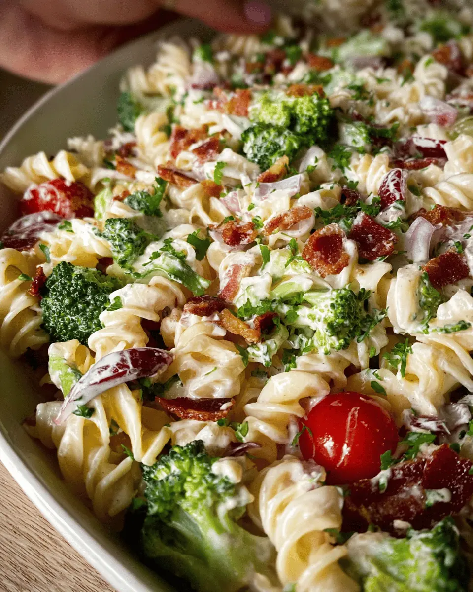 Creamy Broccoli Pasta Salad with Turkey Bacon