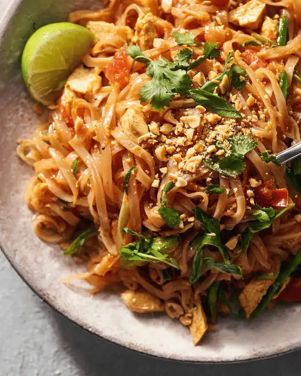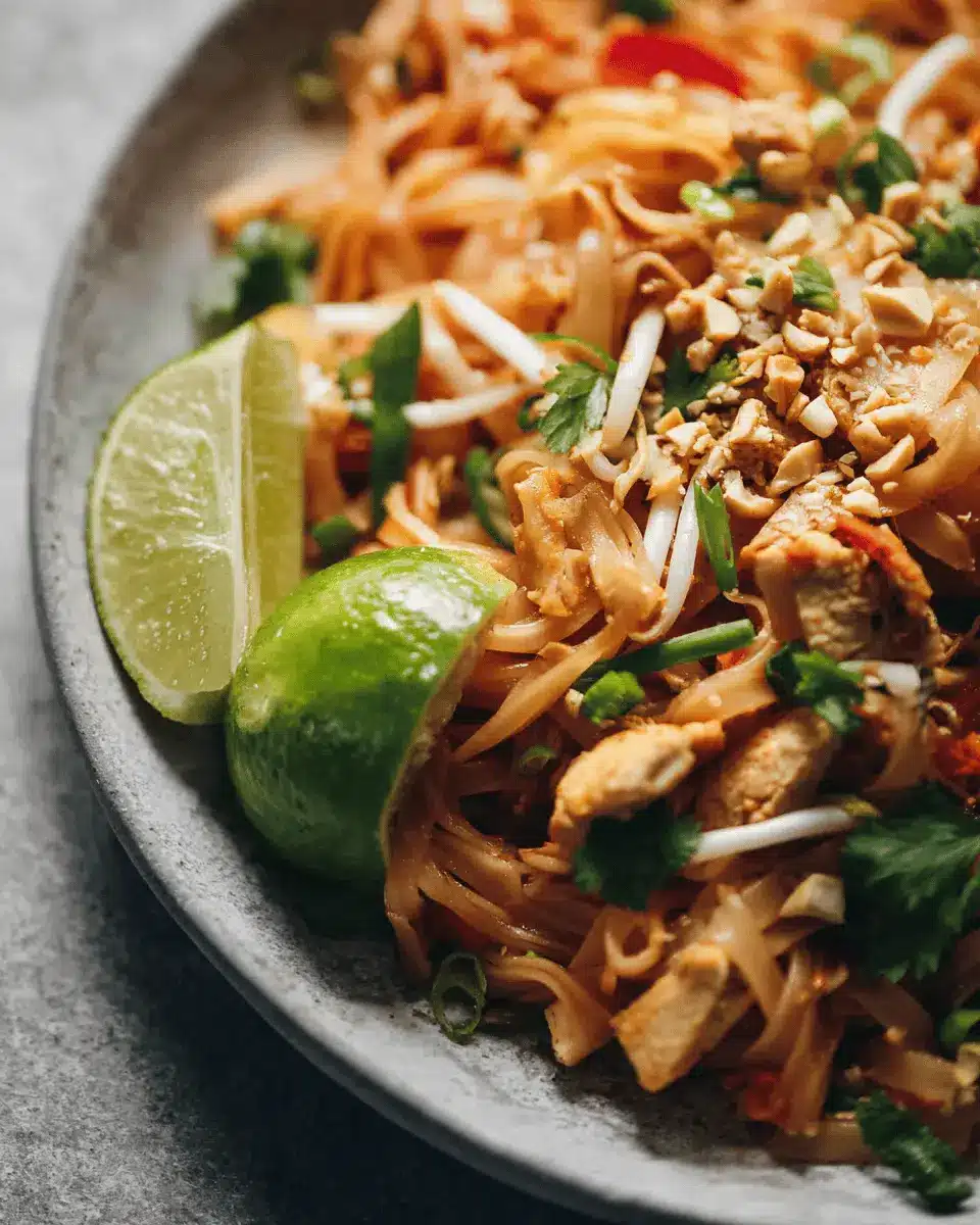 Absolutely! The beauty of Chicken Pad Thai is its versatility. If you’re not a fan of chicken, feel free to swap in shrimp, beef, or even tofu for a vegetarian option. For the noodles, flat rice noodles are ideal, but fettuccine can work in a pinch. Don’t hesitate to customize the vegetables either; bell peppers or snap peas can add extra crunch!