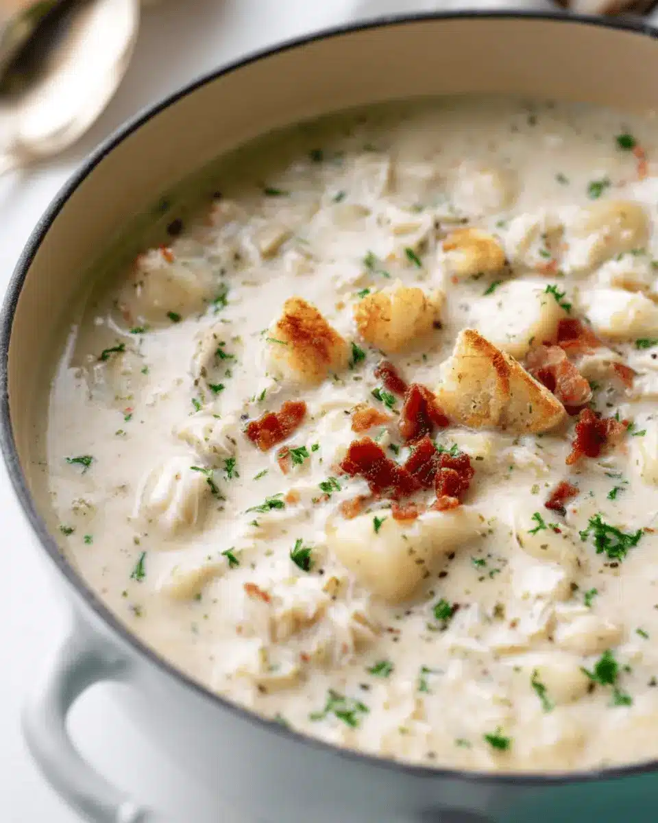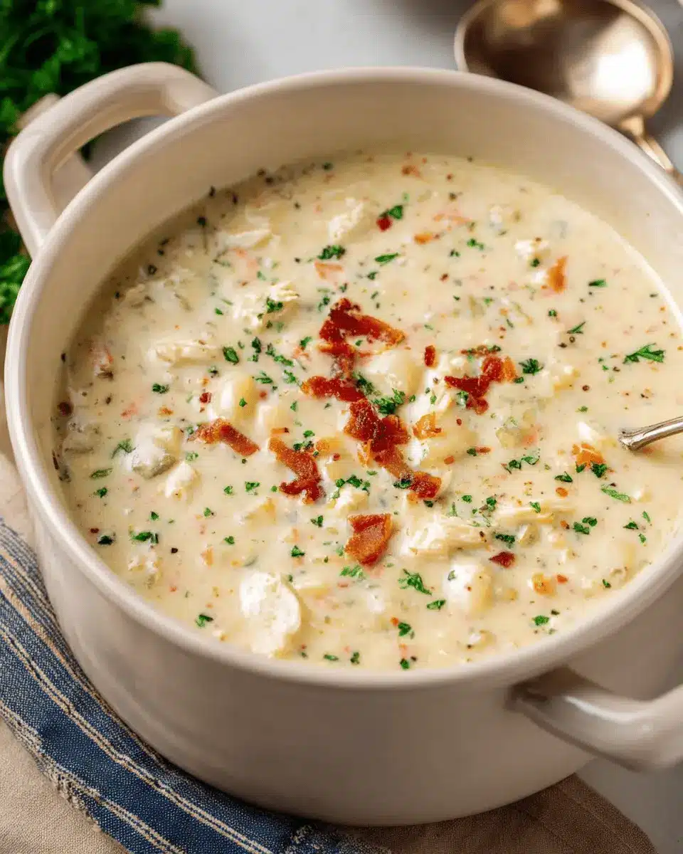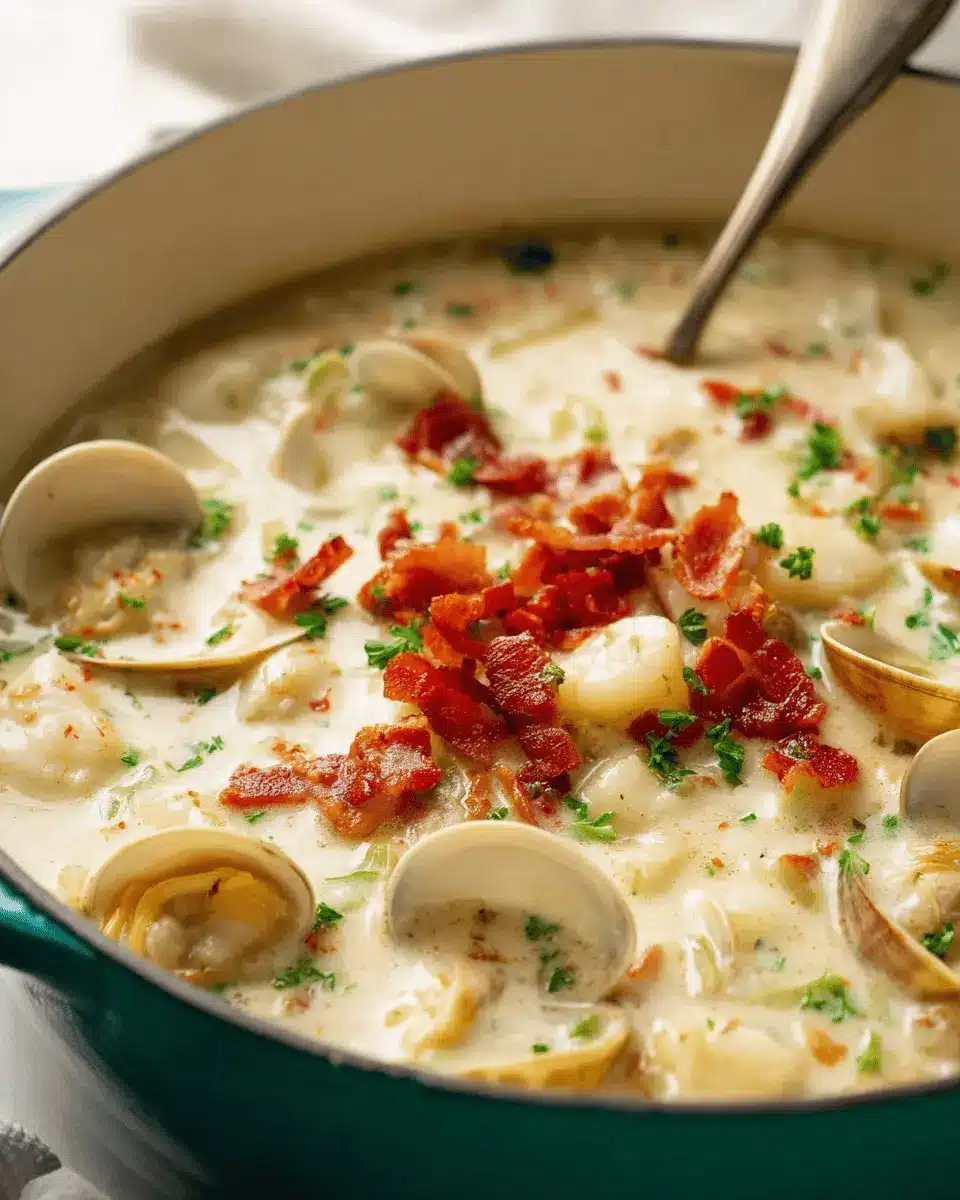 Elevate your clam chowder with some thoughtful garnishes! A sprinkle of fresh parsley adds a pop of color and an herbal note, while a dash of freshly cracked pepper brings a subtle kick. If you’re feeling adventurous, try crispy turkey bacon pieces on top for that satisfying crunch. You could even add a drizzle of olive oil or a squeeze of lemon juice for a zesty finish. Each of these additions can enhance the flavor profile of your chowder and make it uniquely yours!