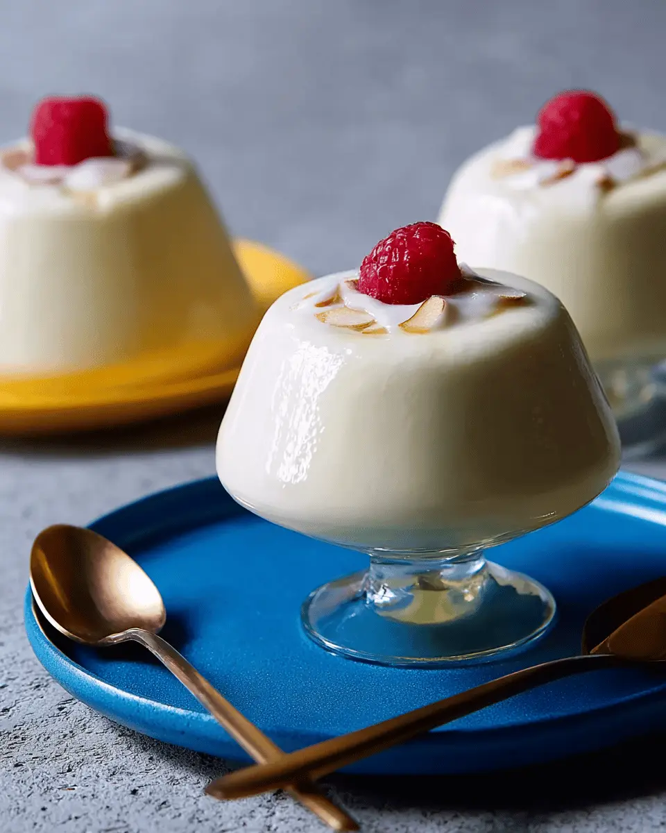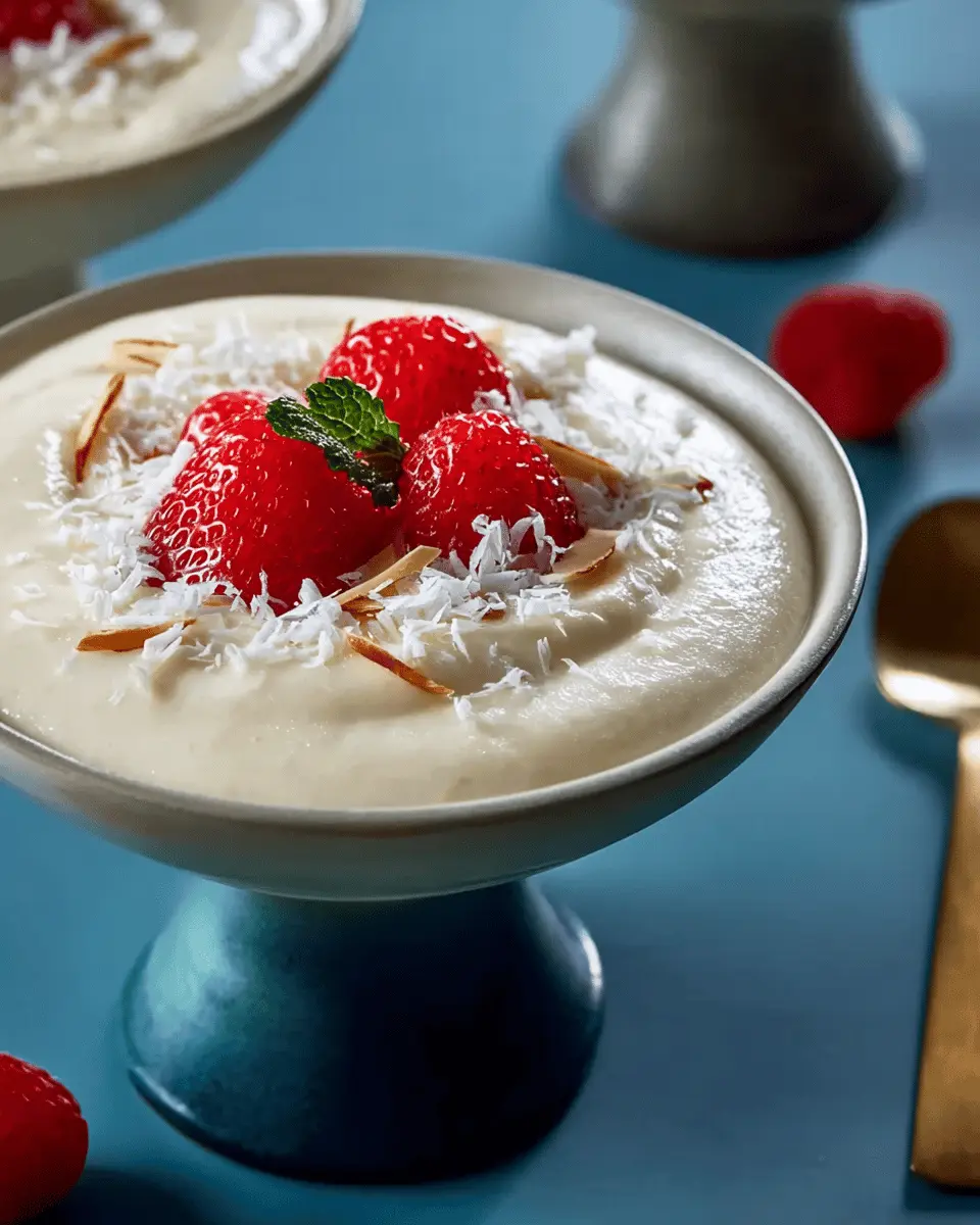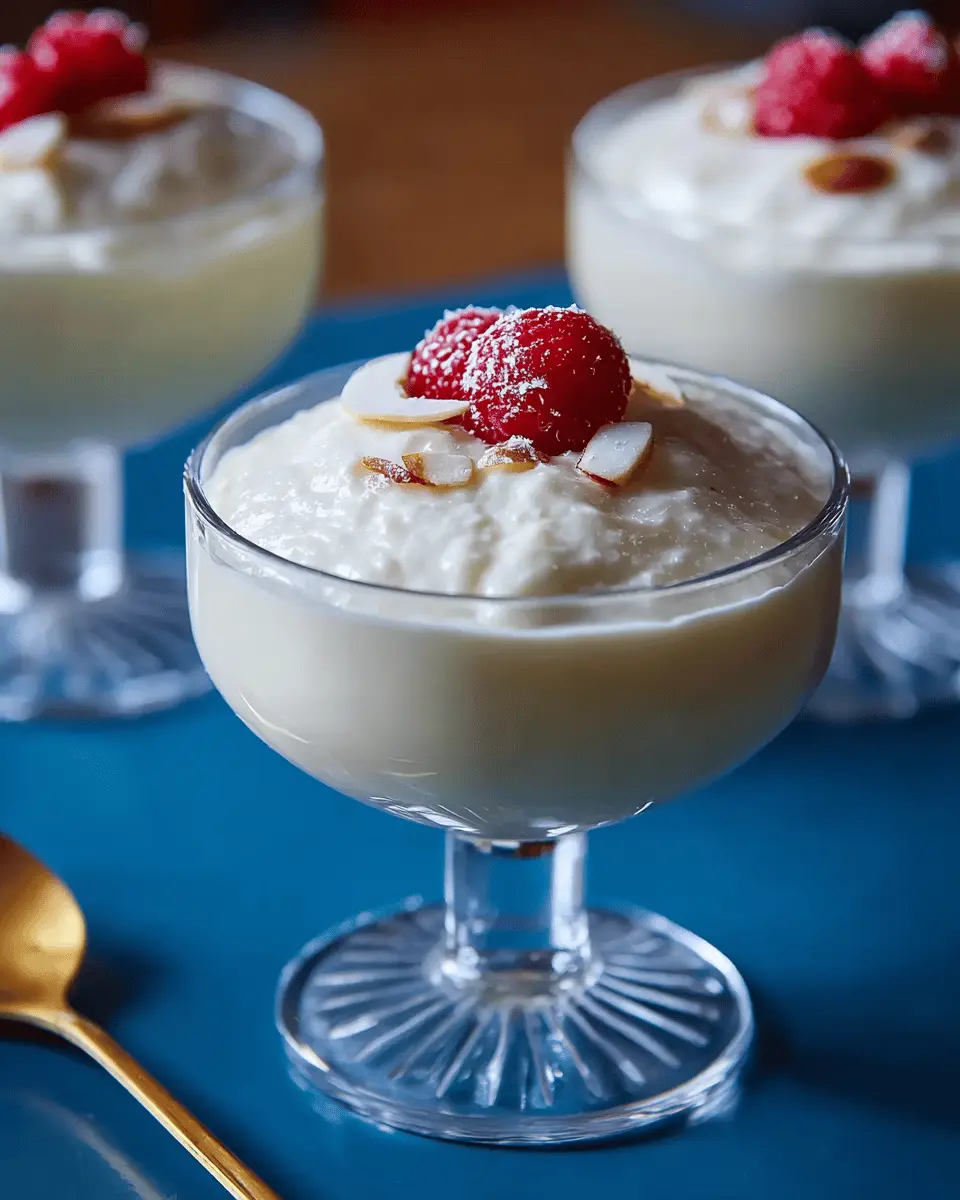 When you’re ready to indulge, remove the vanilla bean piece (if you used it) and give your pudding a quick whisk to smooth it out. Divide it into two delightful bowls and, if you fancy, garnish with fresh raspberries and sliced almonds. Now, you’re all set to savor your homemade classic vanilla pudding!