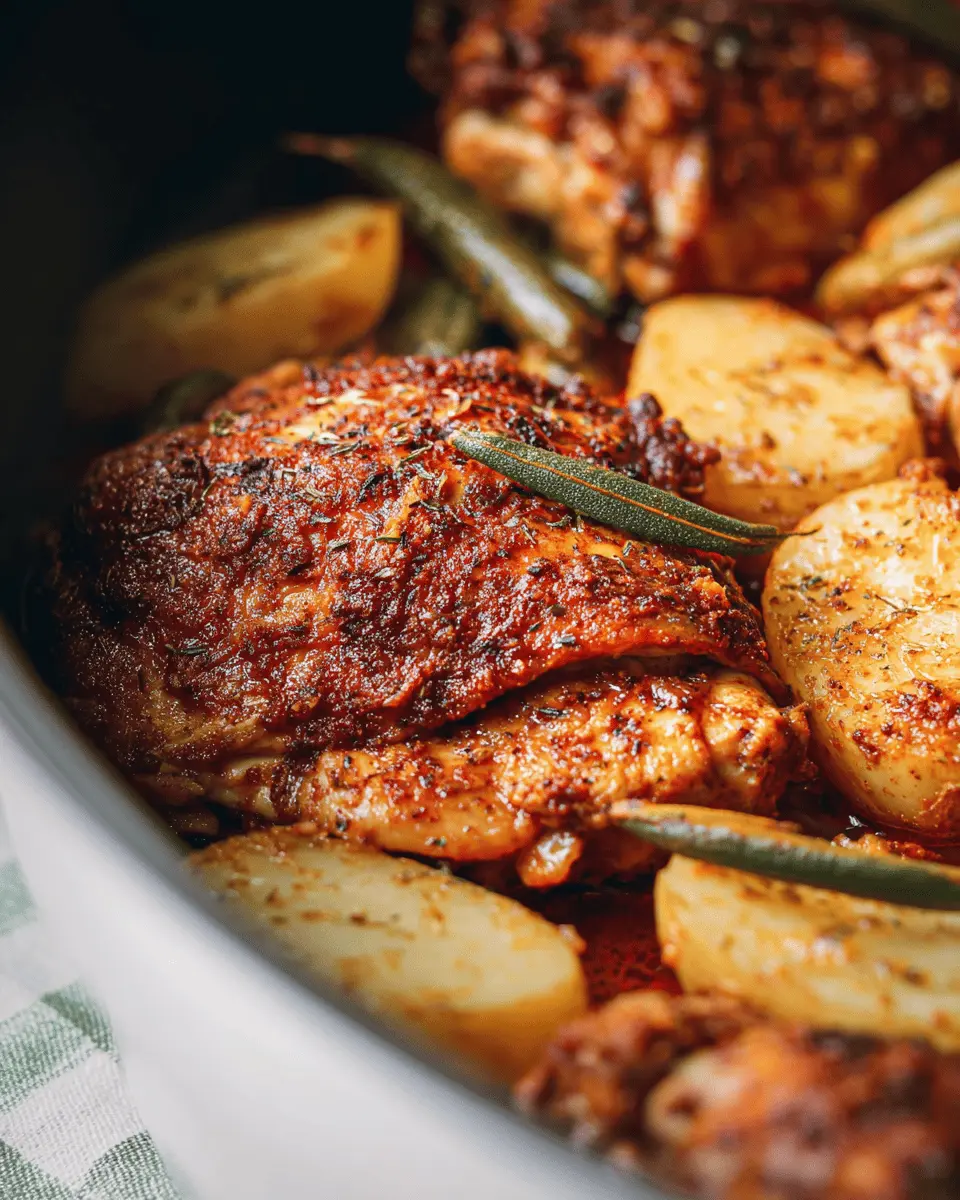 If you're looking to cater to specific dietary preferences, don’t worry. Chicken thighs can easily be substituted with chicken breasts if you prefer leaner meat. For a plant-based option, consider using hearty stuffed mushrooms instead of chicken. Vegetarians can swap potatoes for sweet potatoes and the green beans for other seasonal vegetables like zucchini. Always feel free to modify spices to suit your taste or use fresh herbs for an aromatic twist.