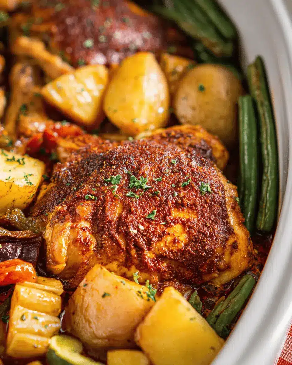 For a complete chicken dinner, achieving that tender, juicy texture is essential. Start by browning the chicken thighs in a hot pan to seal in the juices—this step enhances flavor and locks moisture. Cooking them at the proper temperature in your slow cooker ensures they remain succulent and not overcooked. Aim for an internal temperature of 165°F (75°C) to guarantee safety and taste.
