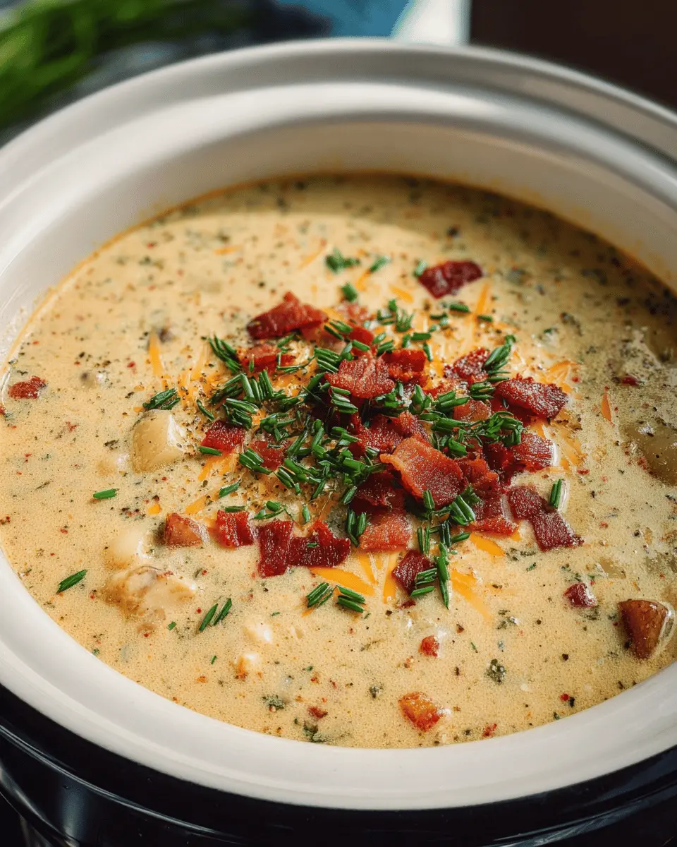 Now, it’s time to bring all your ingredients together! In a slow cooker, add the diced potatoes, turkey bacon, diced leeks, and ranch seasoning. Pour in the chicken broth, ensuring everything is well mixed. Cooking on LOW for 7–8 hours allows the flavors to meld beautifully, giving you that irresistible comfort in a bowl.
