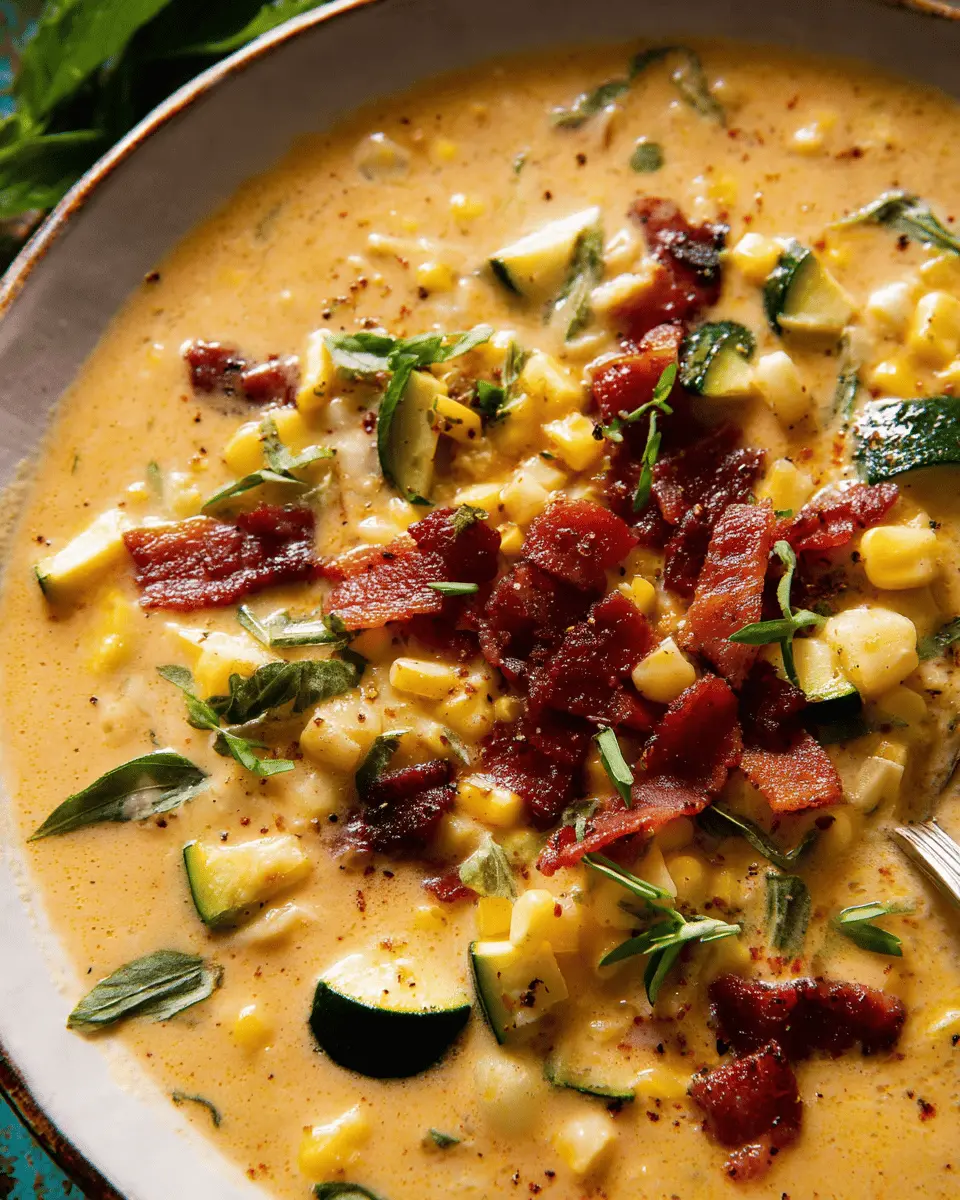 Creamy Corn Zucchini Turkey Bacon Chowder: A Comforting Delight