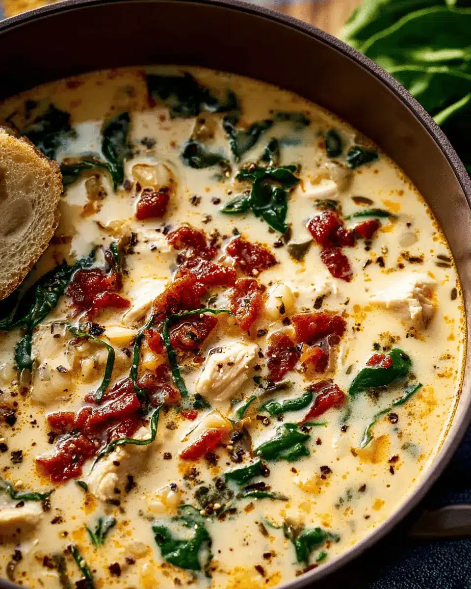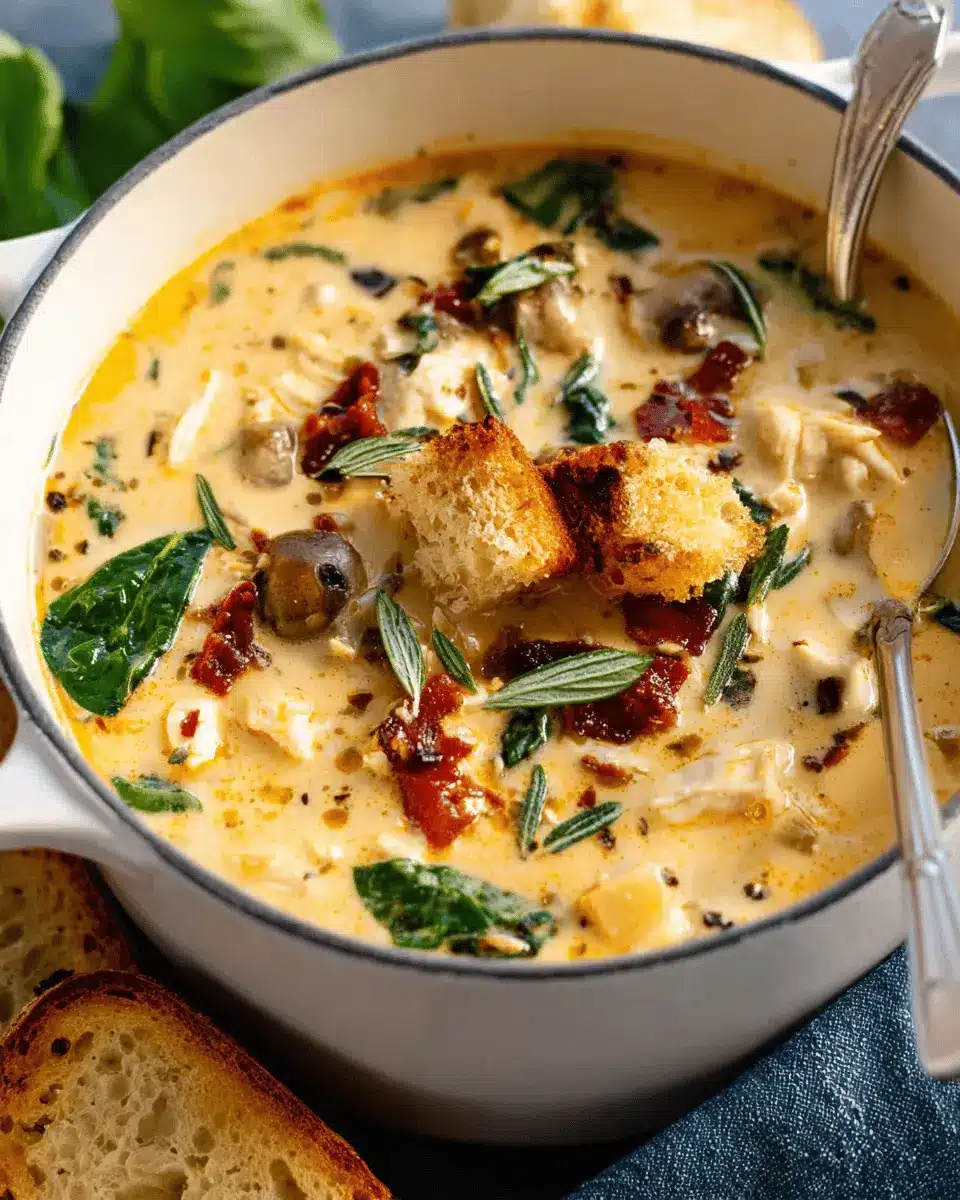 Presentation matters! For your Creamy Tuscan Chicken Soup, a sprinkle of freshly chopped parsley or basil adds a vibrant touch. Consider drizzling a little extra virgin olive oil or lemon-infused oil on top for a gourmet feel. You can even toss in a few additional sun-dried tomatoes for those pops of color and flavor. These small touches can transform an everyday meal into a delightful dining experience.
