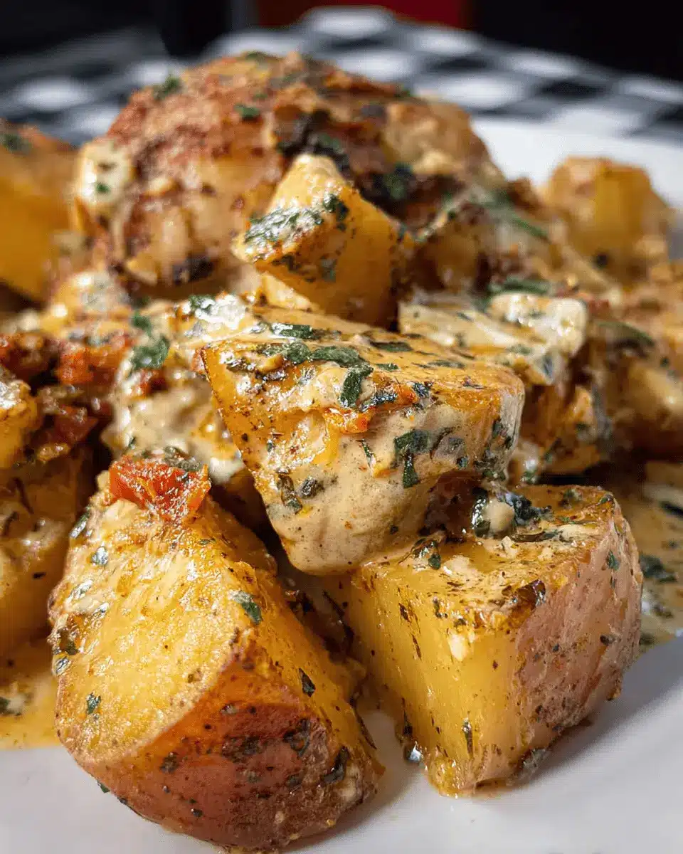 Remember, cooking times can vary, so check that the chicken and potatoes are tender. For a delightful finish, sprinkle some extra cheese right before serving. This dish pairs beautifully with a fresh salad or steamed vegetables for balance. Happy cooking!