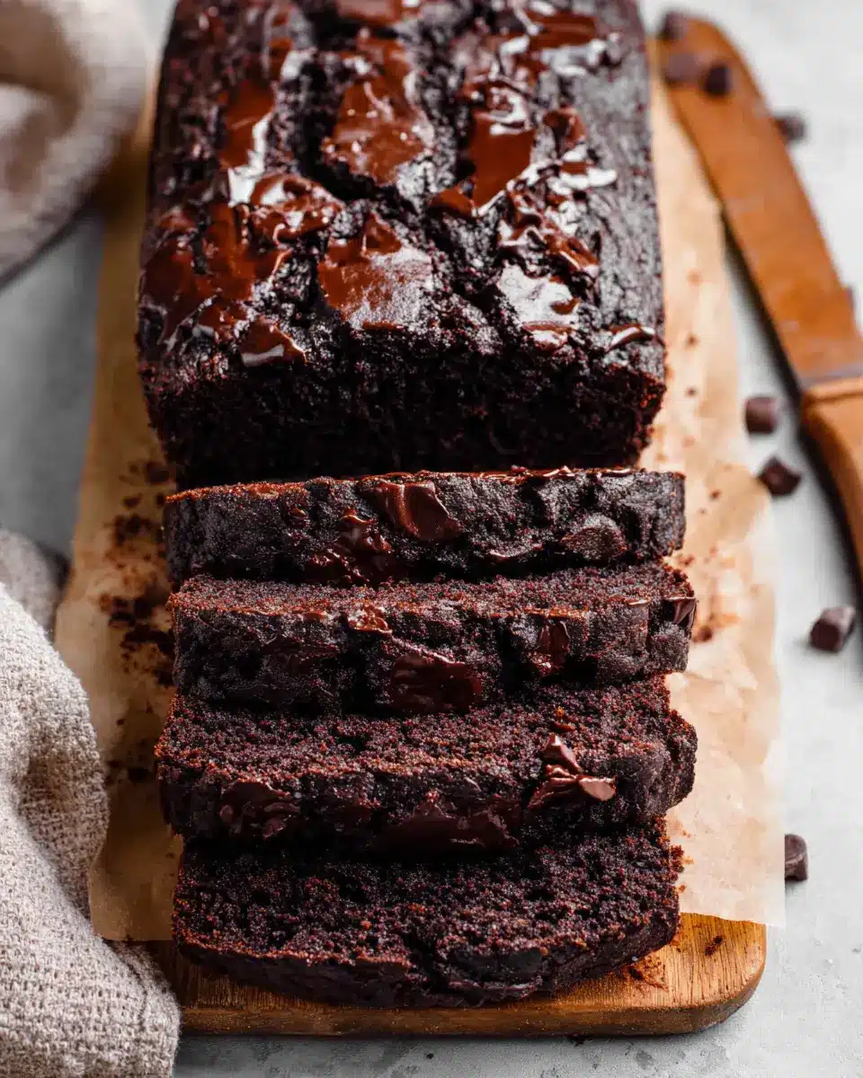Once your double chocolate banana bread is out of the oven, let it cool in the pan on a wire rack for 1 to 2 hours. This waiting time allows the flavors to deepen, making each slice even more delightful. After cooling, gently remove it from the pan, slice, and serve. It’s divine whether enjoyed plain or slathered in butter!