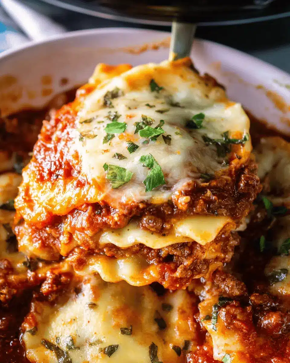 There are so many fun ways to customize this dish! Consider adding sautéed vegetables like mushrooms, onions, or spinach for added nutrients and taste. A sprinkle of red pepper flakes can give your easy slow cooker ravioli lasagna a zesty kick. Don’t forget about herbs like basil or oregano to elevate the flavor even more!