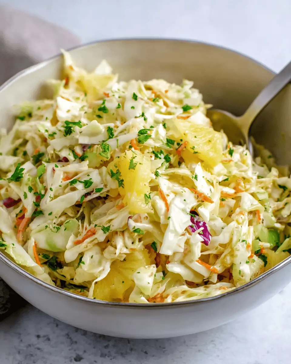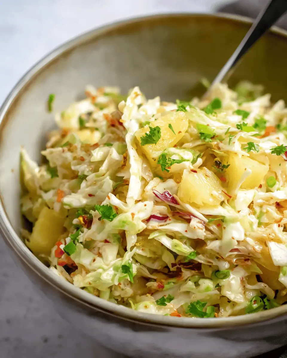 In summary, this easy pineapple coleslaw is a delightful twist on a classic dish, combining crisp cabbage with refreshing pineapple for a taste that pops. It's simple to make and perfect for any gathering. Try it today and enjoy a burst of flavors at your next meal!