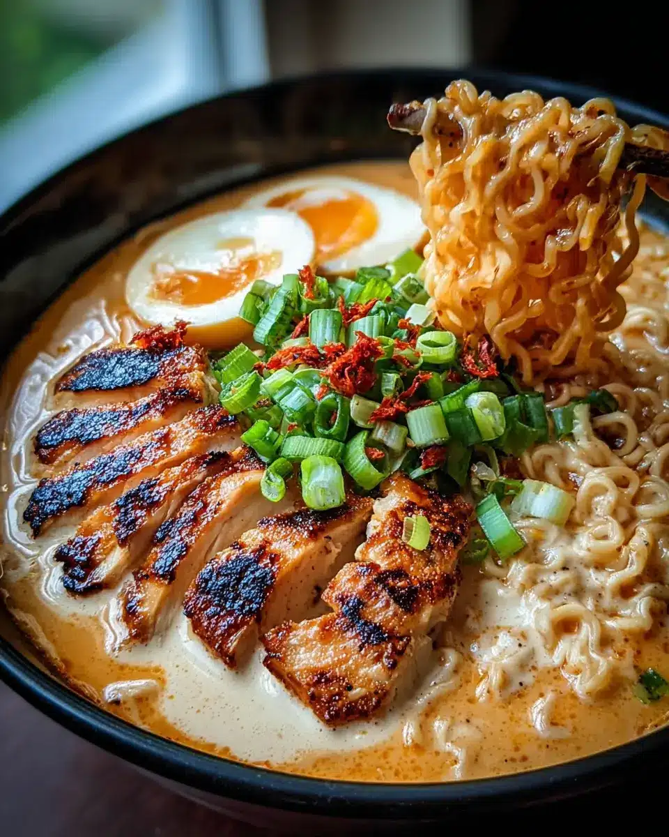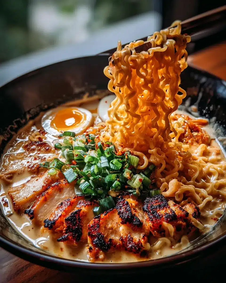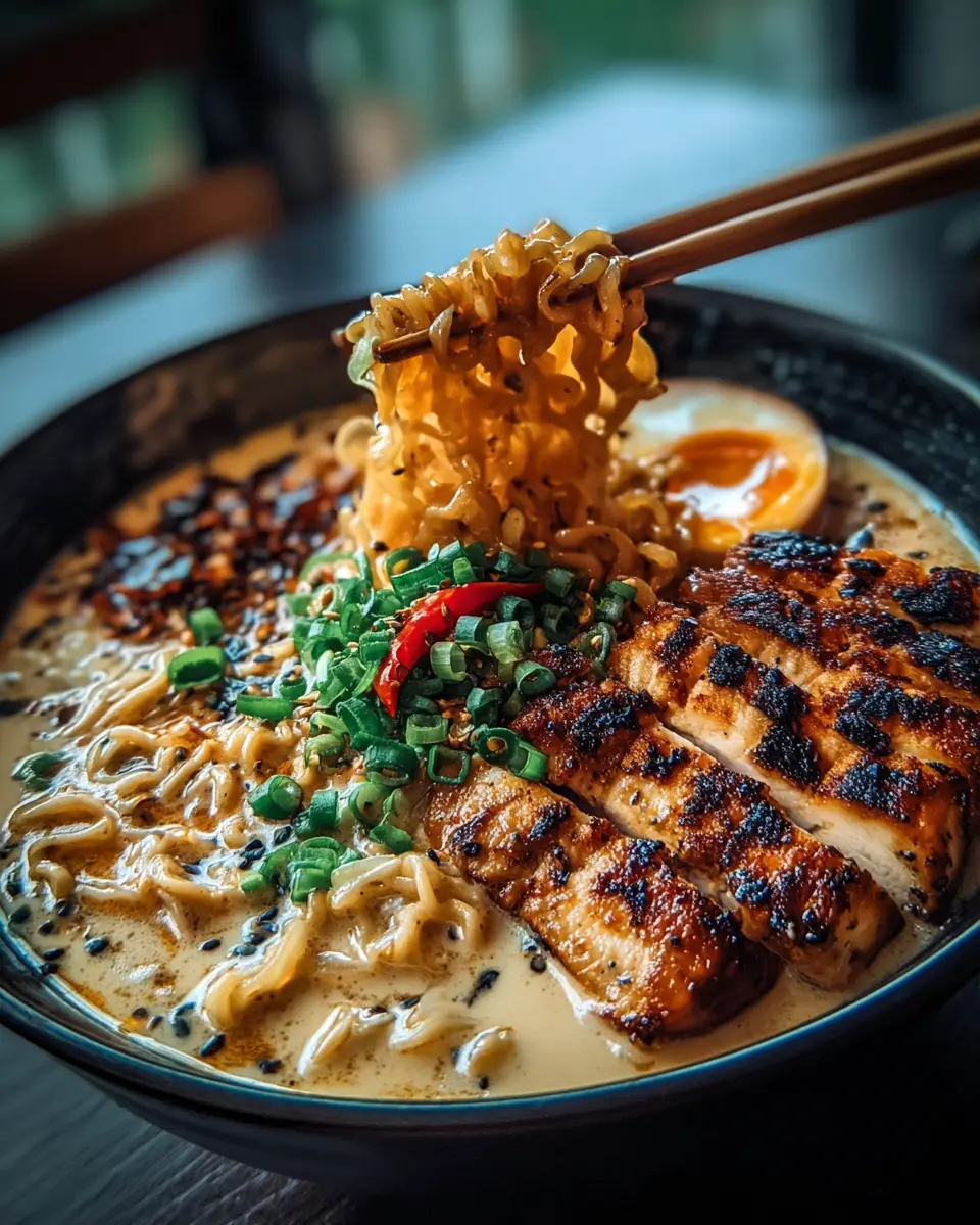 Fiery Chicken Ramen with Creamy Garlic Sauce