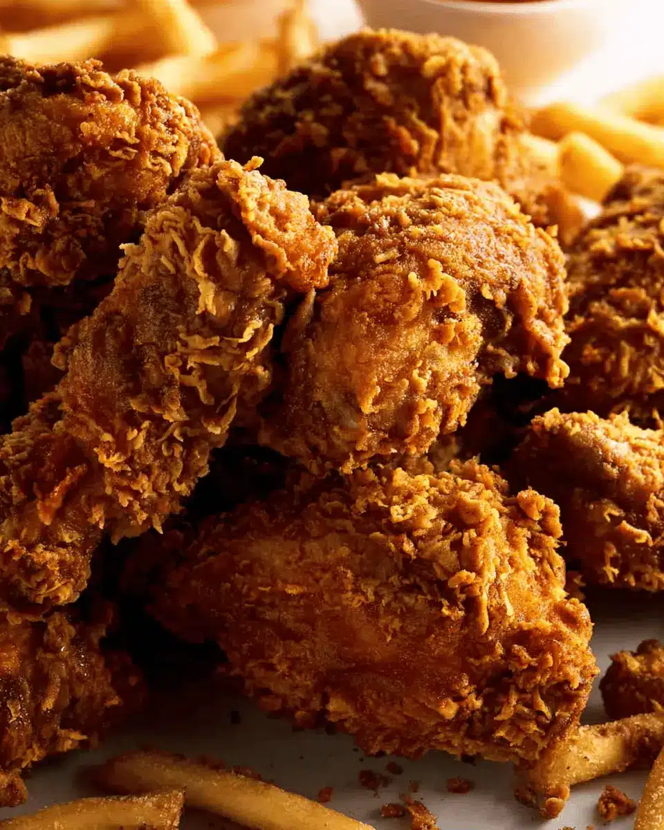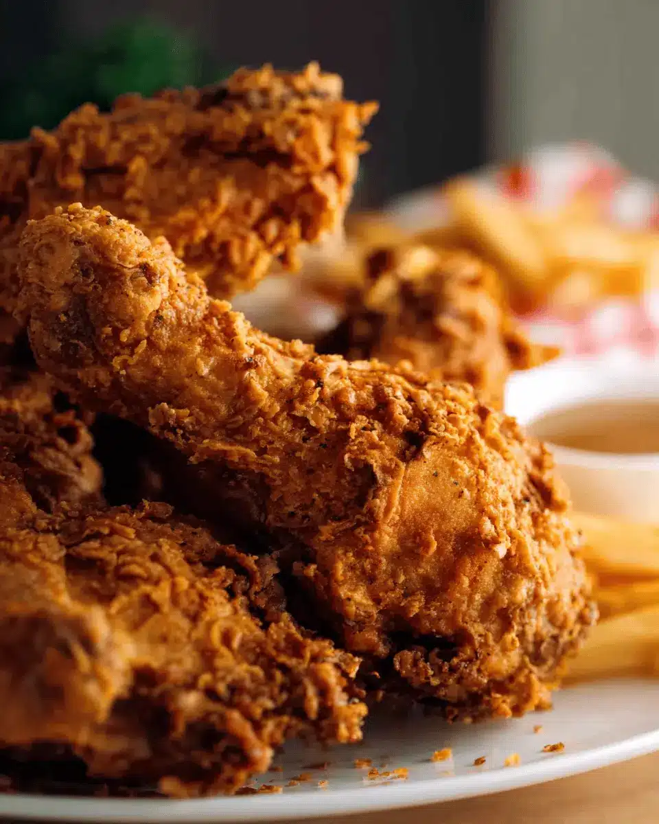 Achieving that crispy, golden-brown crust is all about texture! Keep your chicken pieces dry before breading to help the flour stick better. Mixing some cornstarch into your flour creates a light, crunchy texture. Don't forget to use cold buttermilk in your marinade; the cold temperature helps create steam during frying, giving you that irresistible crunch.