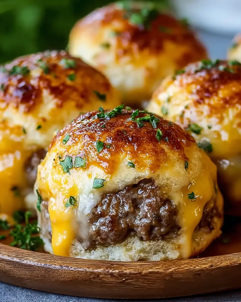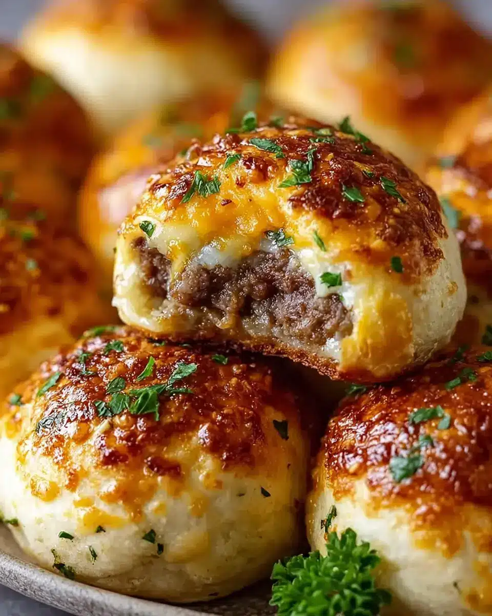 In conclusion, these garlic parmesan cheeseburger bombs are a delightful twist on classic flavors. Perfect for gatherings or a cozy night at home, they combine savory beef, melty cheese, and the irresistible taste of garlic and parmesan. Try them at your next get-together and watch them disappear!