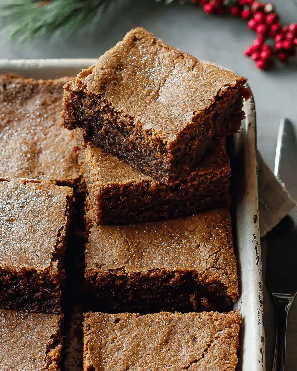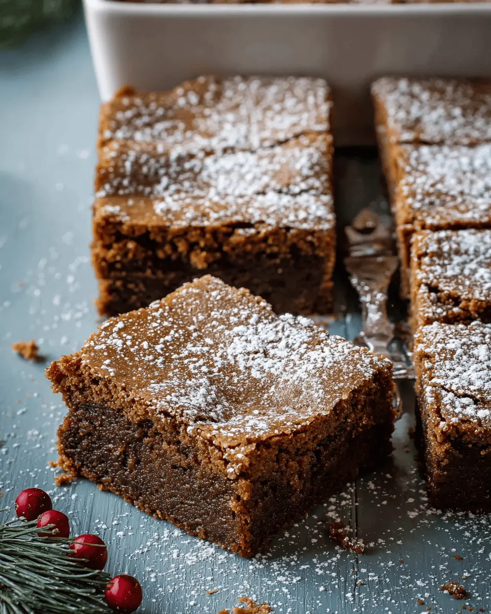 Elevate your Gingerbread Brownies presentation with a dusting of confectioners’ sugar for a snowy effect, resembling a winter wonderland. Add a drizzle of caramel or a scoop of vanilla ice cream for an indulgent twist. Consider serving them alongside fresh berries for a pop of color and brightness. Creating a brownie sundae could take things to the next level—layer your brownies with ice cream and finish with whipped cream and nuts for an unforgettable treat.