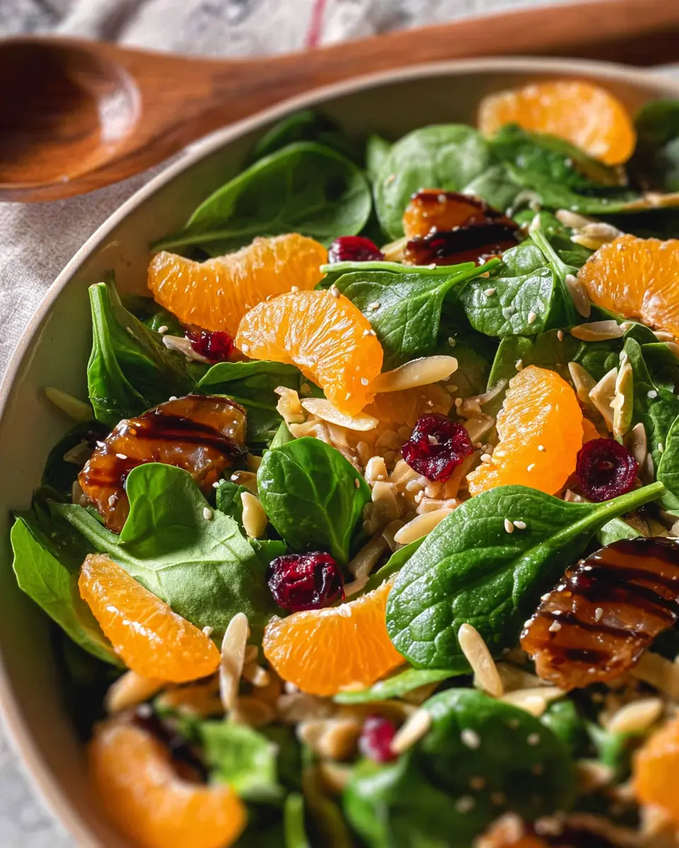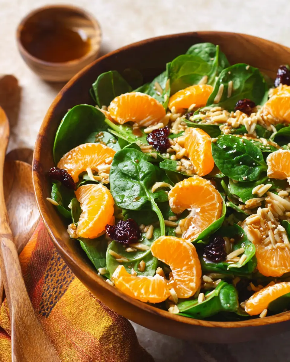 In just 25 minutes, you can whip up a fresh and beautiful Mandarin Spinach Salad with Teriyaki Dressing, ready to wow your friends and family!