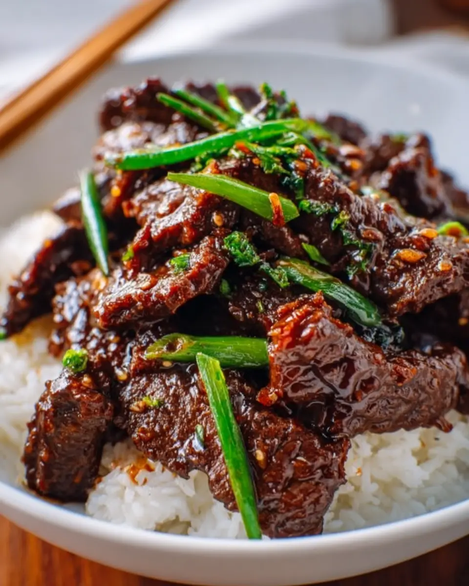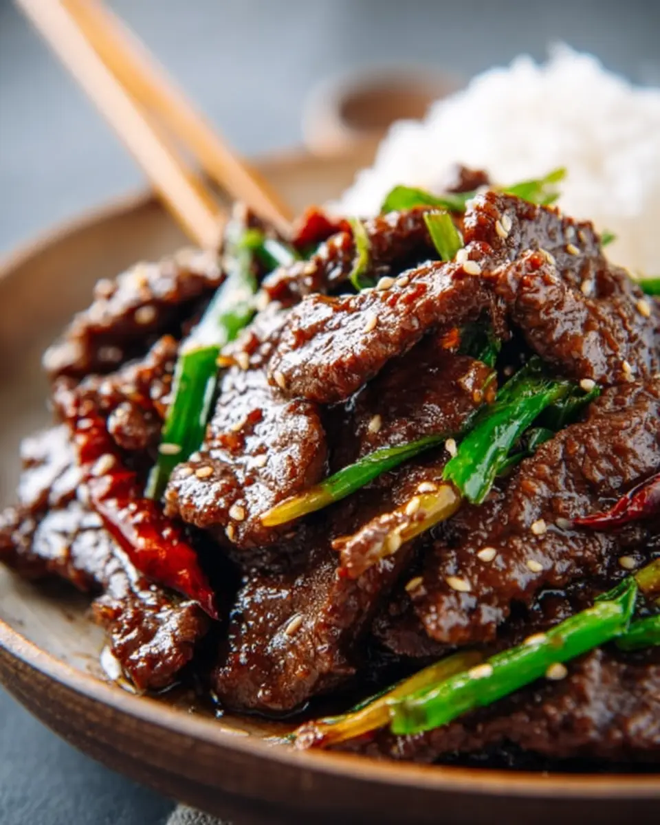 - Bowl Style: Serve the Mongolian beef in individual bowls over rice, topped with sesame seeds and extra scallions.