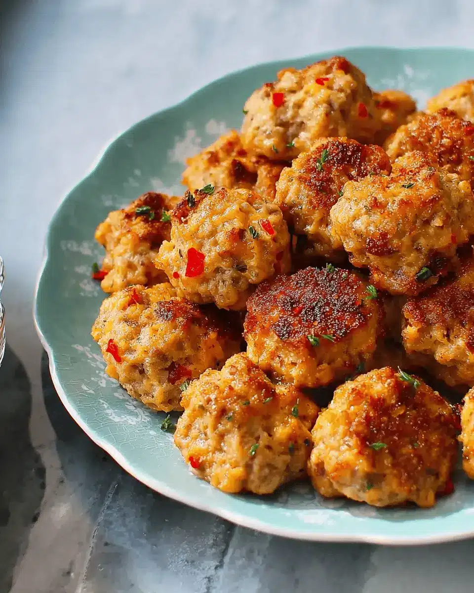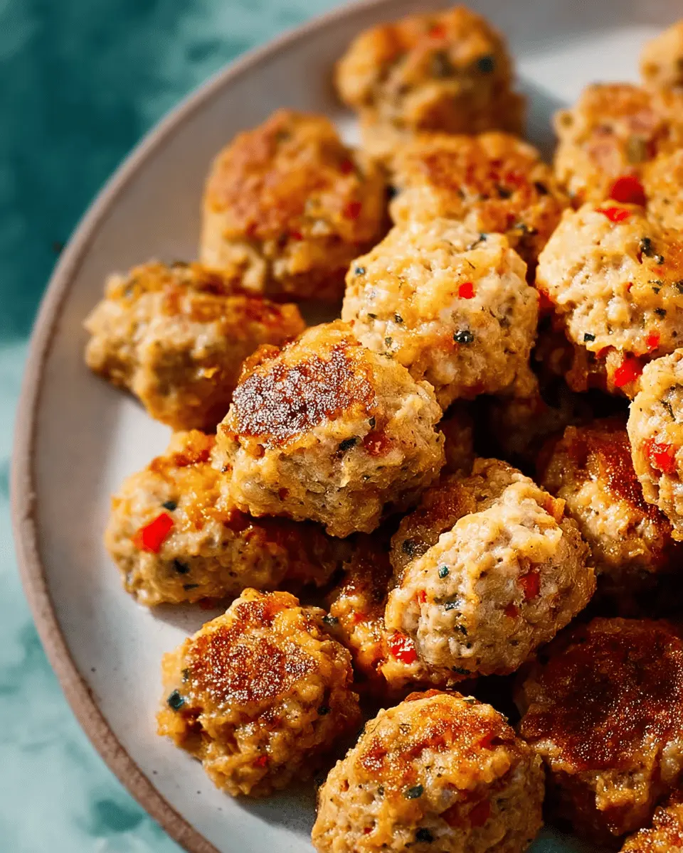 - Bite-sized skewers: Stack the sausage balls on toothpicks for easy grabbing. Pair them with cherry tomatoes or cucumber slices for extra flair.