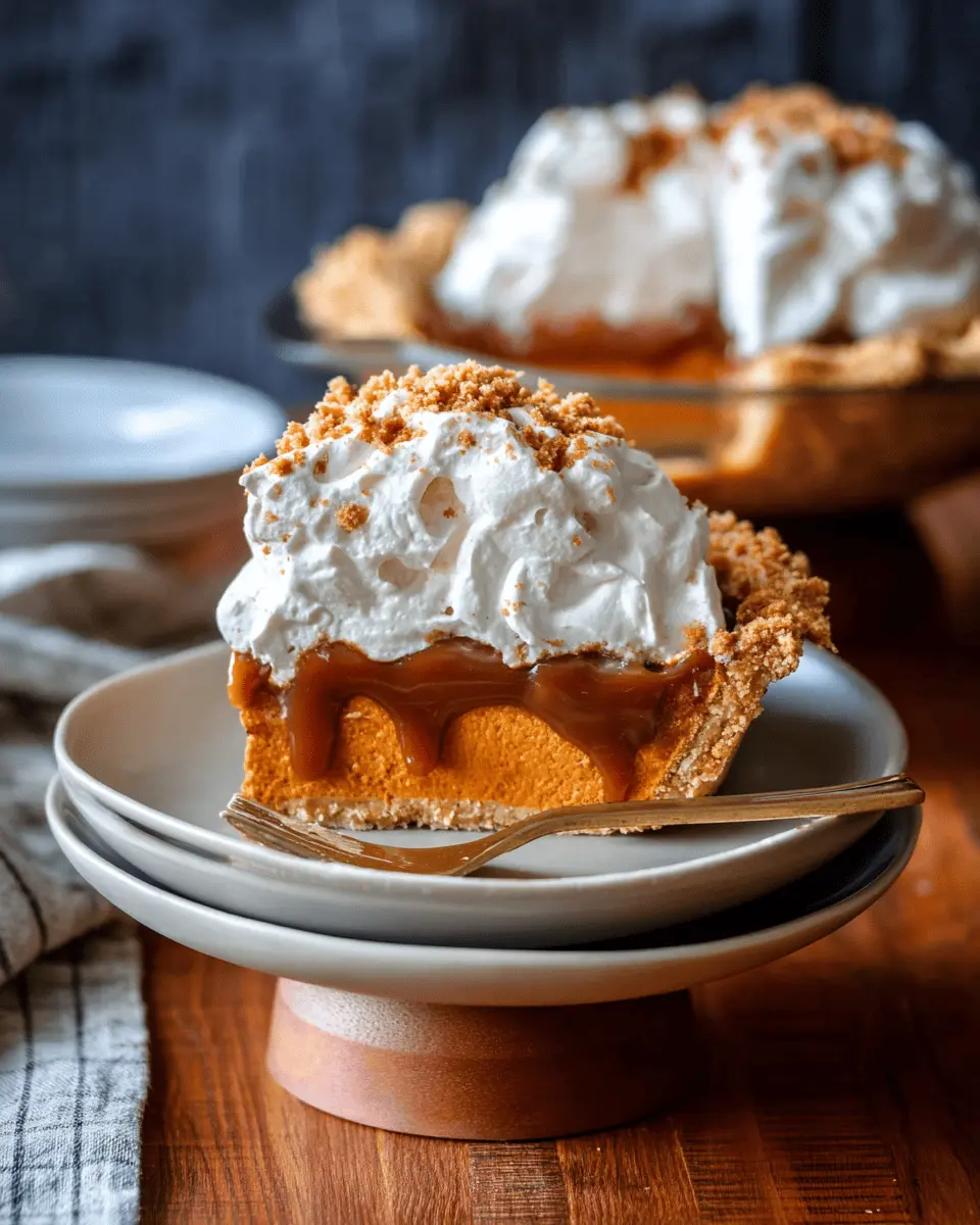 Make the presentation of your pumpkin caramel pie a showstopper! Use a beautiful pie dish to showcase your creation, and garnish with slices of fresh apple or pear around the base. A dollop of fresh whipped cream and a sprinkle of toasted pecans not only adds texture but also enhances the visual appeal. For an Instagram-worthy touch, serve individual slices on colorful plates or with decorative napkins. Consider placing the pie on a rustic wooden board for a charming farmhouse feel that will impress your guests.