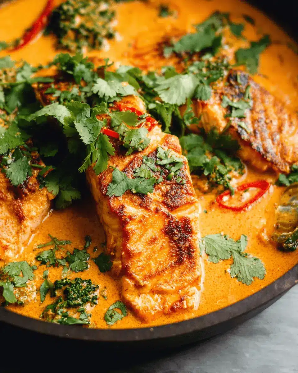 If you crave a little kick in your cooking, a spicy salmon coconut curry is the perfect twist! Simply add extra Thai red curry paste or toss in some chopped fresh jalapeños or serrano peppers. For an authentic touch, you can finish it off with a sprinkle of crushed red pepper flakes or a dash of sriracha. This spicy variation is not only warming but also elevates the dish to a whole new level. Perfect for those who love bold flavors!