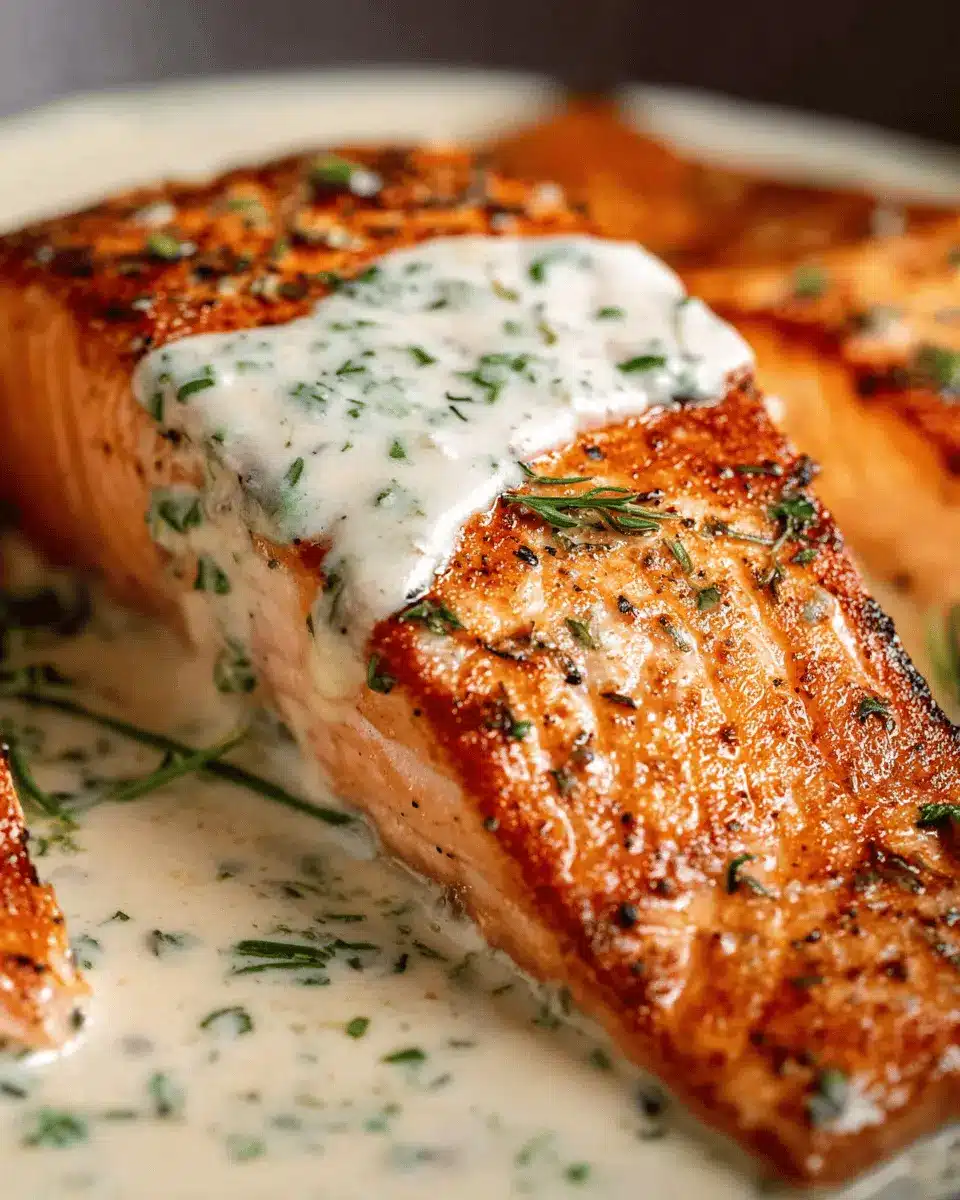Elevate your salmon with a refreshing lemon-herb twist! Simply add a zesty squeeze of fresh lemon juice and a tablespoon of lemon zest to the creamy sauce. Incorporate herbs like dill and parsley for a vibrant and fragrant finish. This bright version pairs beautifully with sides like quinoa salad or garlic-roasted vegetables.