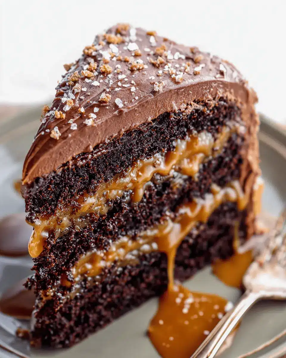 Absolutely! You can freeze your salted caramel chocolate cake easily. Just wrap the unfrosted layers tightly in plastic wrap, then in aluminum foil. They can be stored for up to two months. When you’re ready to enjoy, simply thaw in the fridge overnight before frosting and serving!