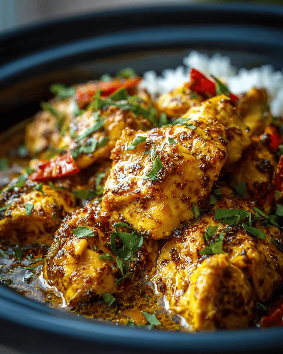 Cover the slow cooker with its lid and set it to cook on low for about 6 hours. This slow-and-steady cooking method allows the chicken to become incredibly tender and soak up all those delicious flavors. As the rich aromas waft through your kitchen, you might find it hard to resist a taste before it's even finished!