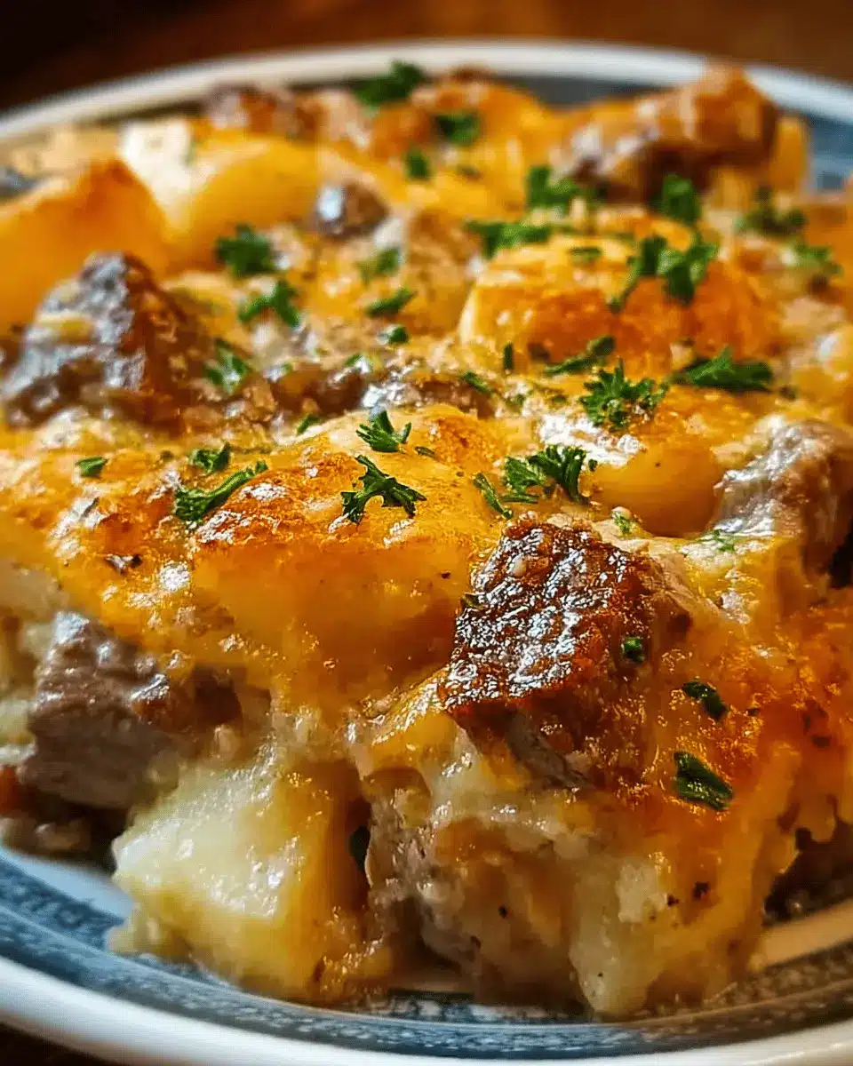 Once your slow cooker steak and cheddar potato casserole is done cooking, it’s showtime! Gently stir the casserole to combine all the delicious layers. You might want to taste-test and adjust the seasoning. For a polished presentation, garnish with additional shredded cheese and some fresh parsley if you like. Serve it warm, and watch your friends and family devour every last bite!