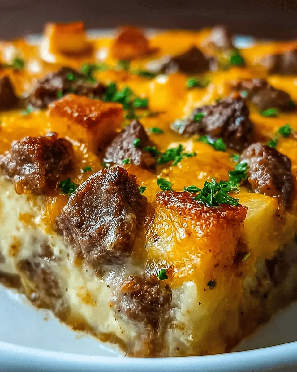Start by prepping the star of this casserole: the steak. You’ll want to use about 2 pounds of beef steak, such as sirloin or chuck, cut into bite-sized pieces. In a bowl, sprinkle in 1 teaspoon of salt, ½ teaspoon of black pepper, ½ teaspoon of garlic powder, and 1 teaspoon of onion powder. Toss the steak pieces until they’re beautifully coated with the seasoning. This step infuses your meat with flavor, essential for creating a memorable dish. And hey, if you’re feeling adventurous, you might even add a pinch of smoked paprika for a little extra kick!