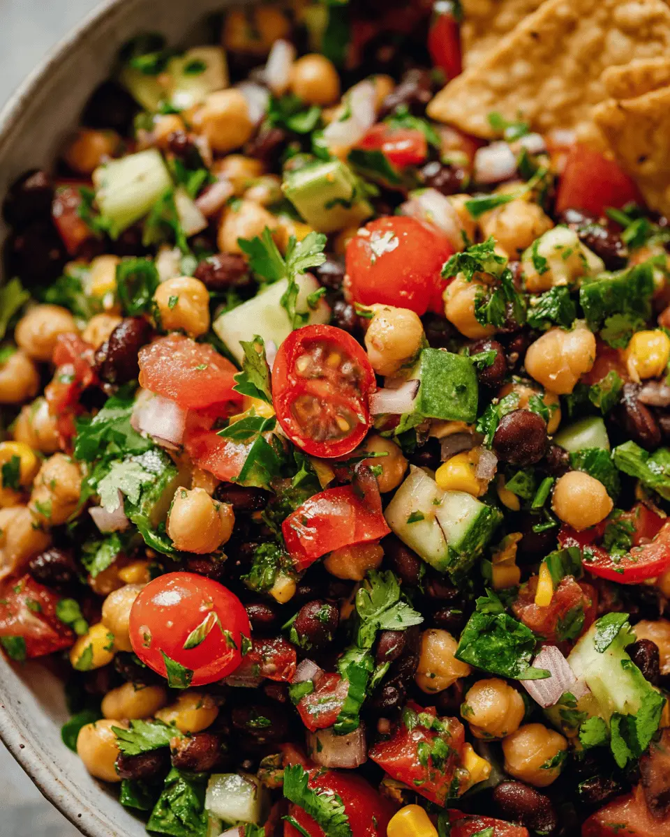 - Tortilla chips: For a crunchy twist, scoop up the salad with tortilla chips—perfect for a summer picnic or casual gathering.