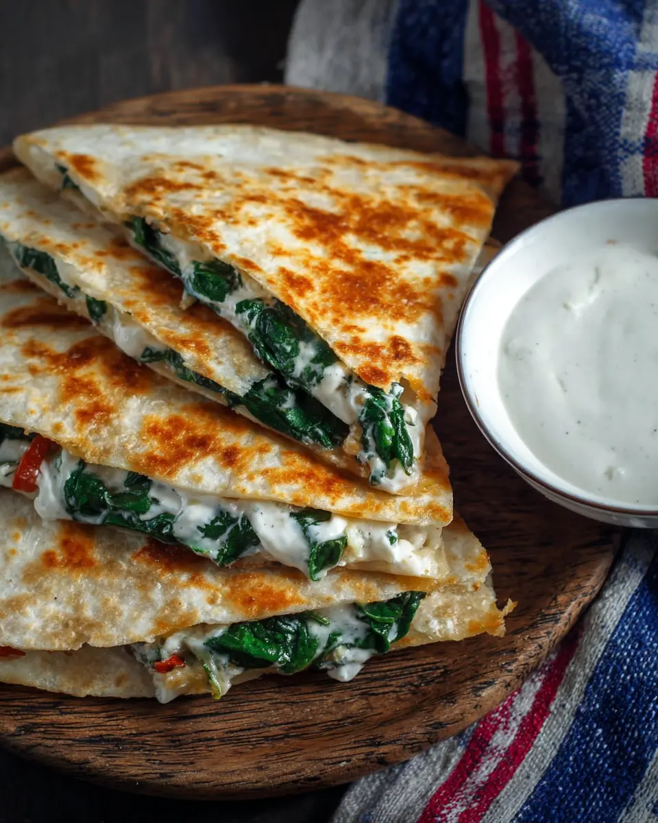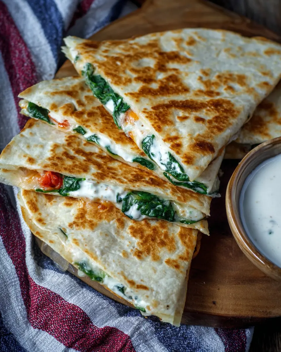 Spinach Quesadilla with Feta and Pepper Jack Cheese