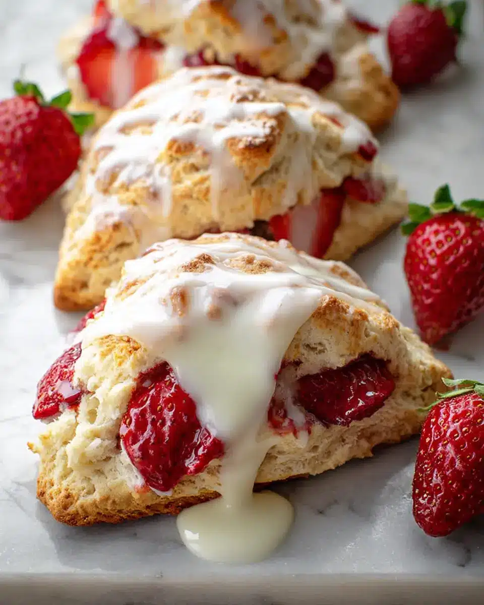 Whether serving them warm with a drizzle of glaze or simply enjoying them plain with a pat of butter, you’ll find that these scones bring joy and comfort to any occasion. Let’s dive into the recipe for strawberries and cream scones and create something unforgettable!