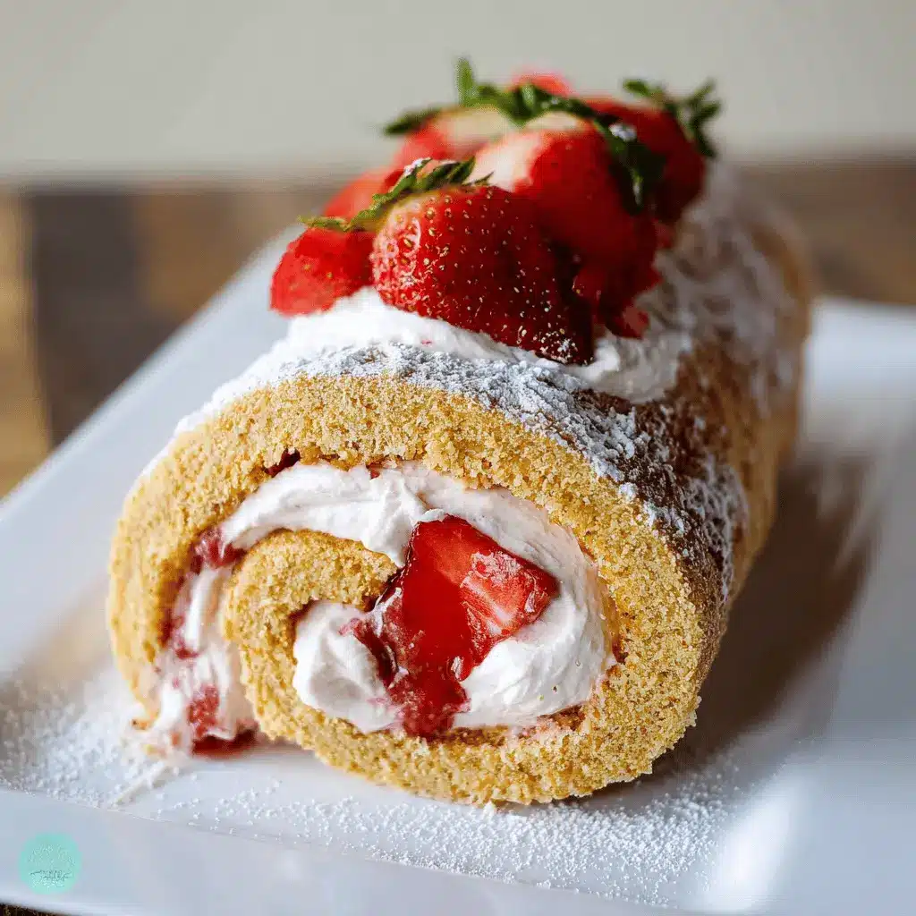- Fresh Strawberries: Slice some strawberries and sprinkle them on top or place a few artfully arranged slices around your cake roll.
