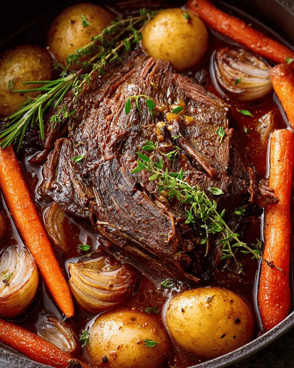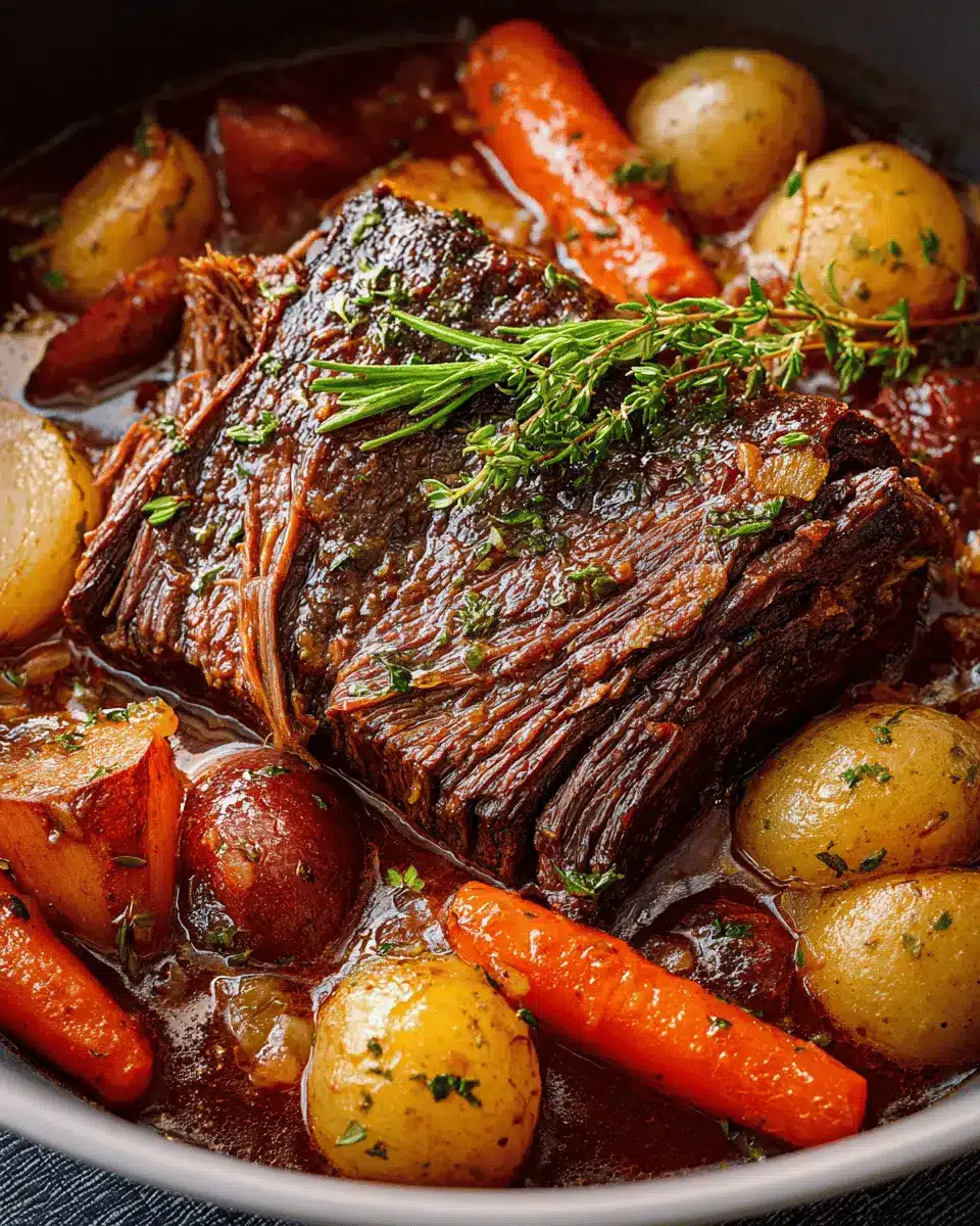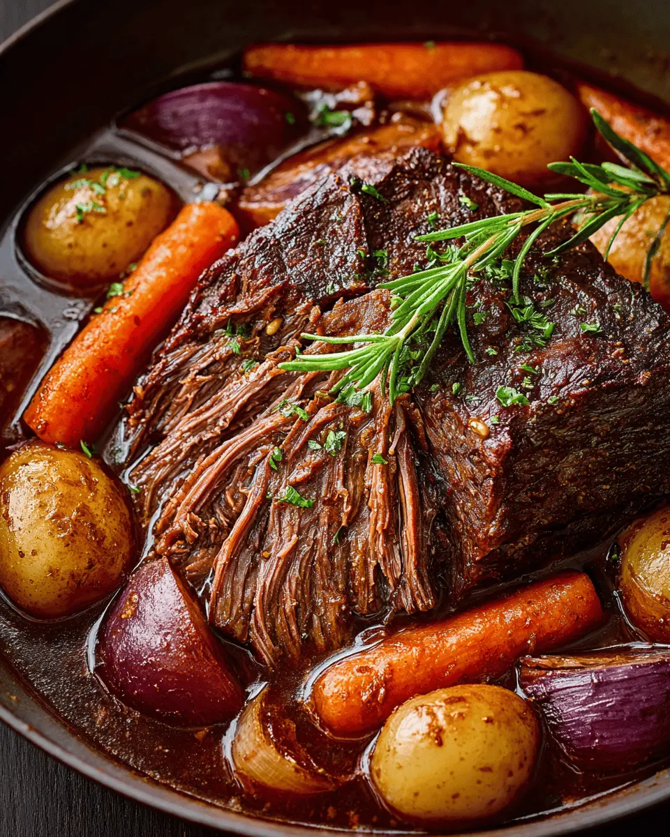 Succulent Chuck Roast with Root Vegetables in Savory Gravy