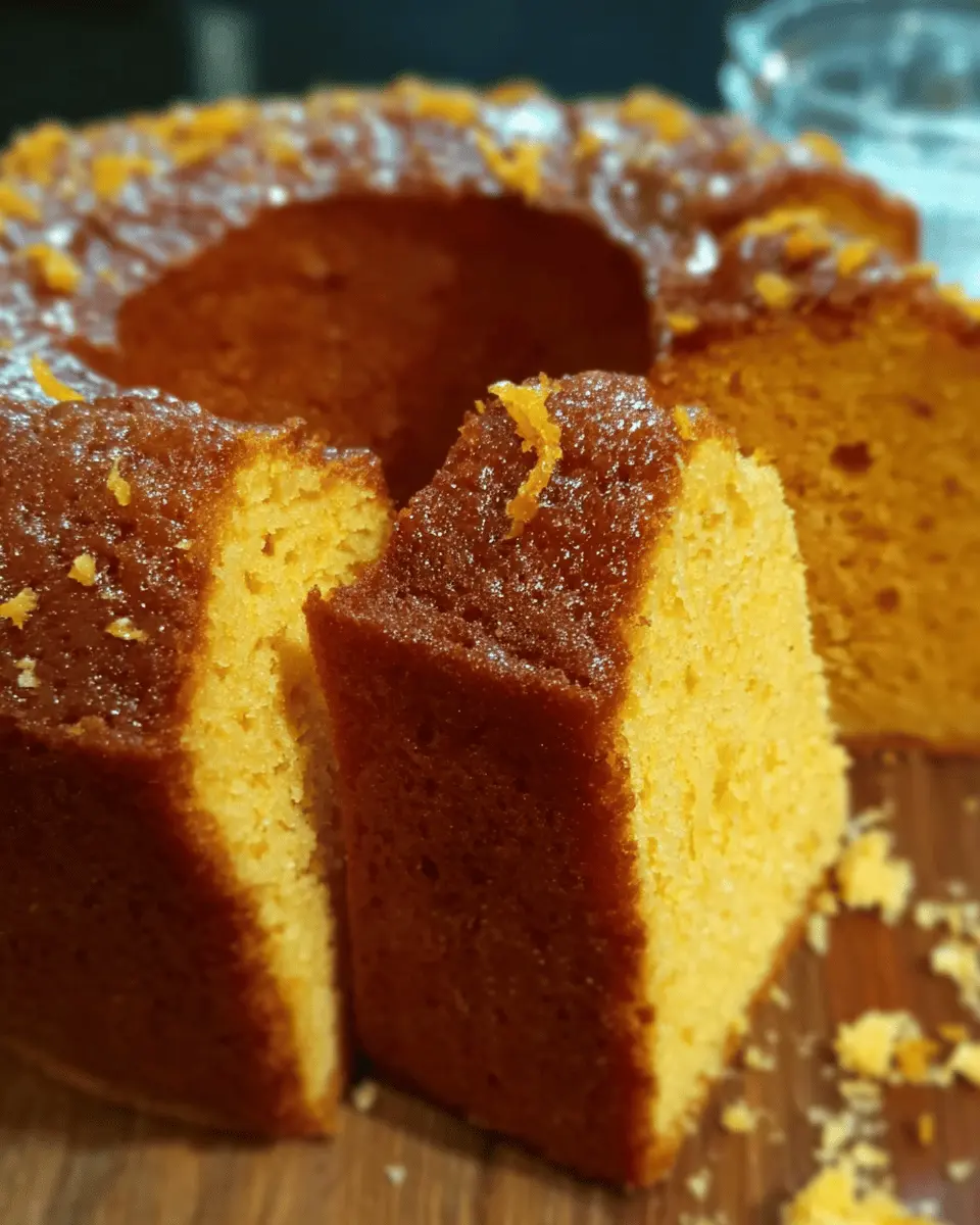 Also, don’t forget what makes this cake shine—a sweet glaze made from 1 cup confectioners' sugar and 5 teaspoons orange juice, topped with 2 tablespoons grated orange zest for that extra zing!