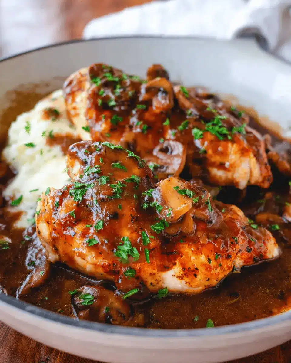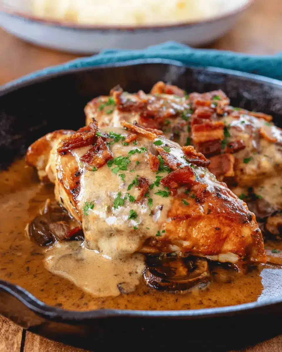 When sautéing the mushrooms and onions, heat your cast-iron skillet sufficiently before adding the oil. Maintaining medium-high heat ensures a beautiful sear on your chicken, which contributes to its flavor. Don’t rush the sautéing process—allow the vegetables to cook until they achieve a lovely golden-brown color. Scraping those flavorful bits at the bottom of the pan is essential for a rich sauce, so make sure to do that!