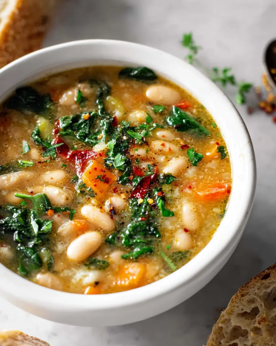 Ready to make a hearty pot of Tuscan White Bean Soup? Let’s dive into the recipe! You’ll find that it’s not only satisfying but also incredibly easy to whip up, no culinary school degree required.