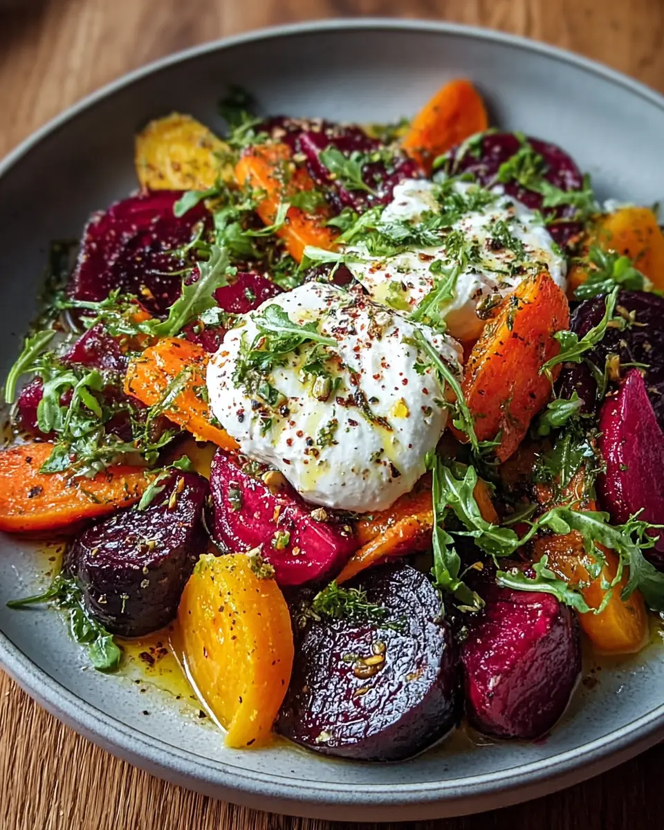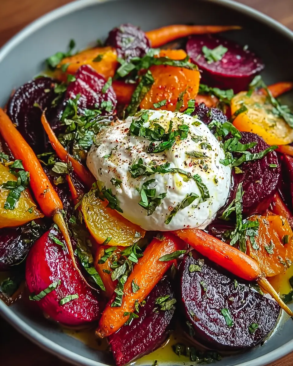 Vibrant Roasted Beets & Carrots with Creamy Burrata Salad