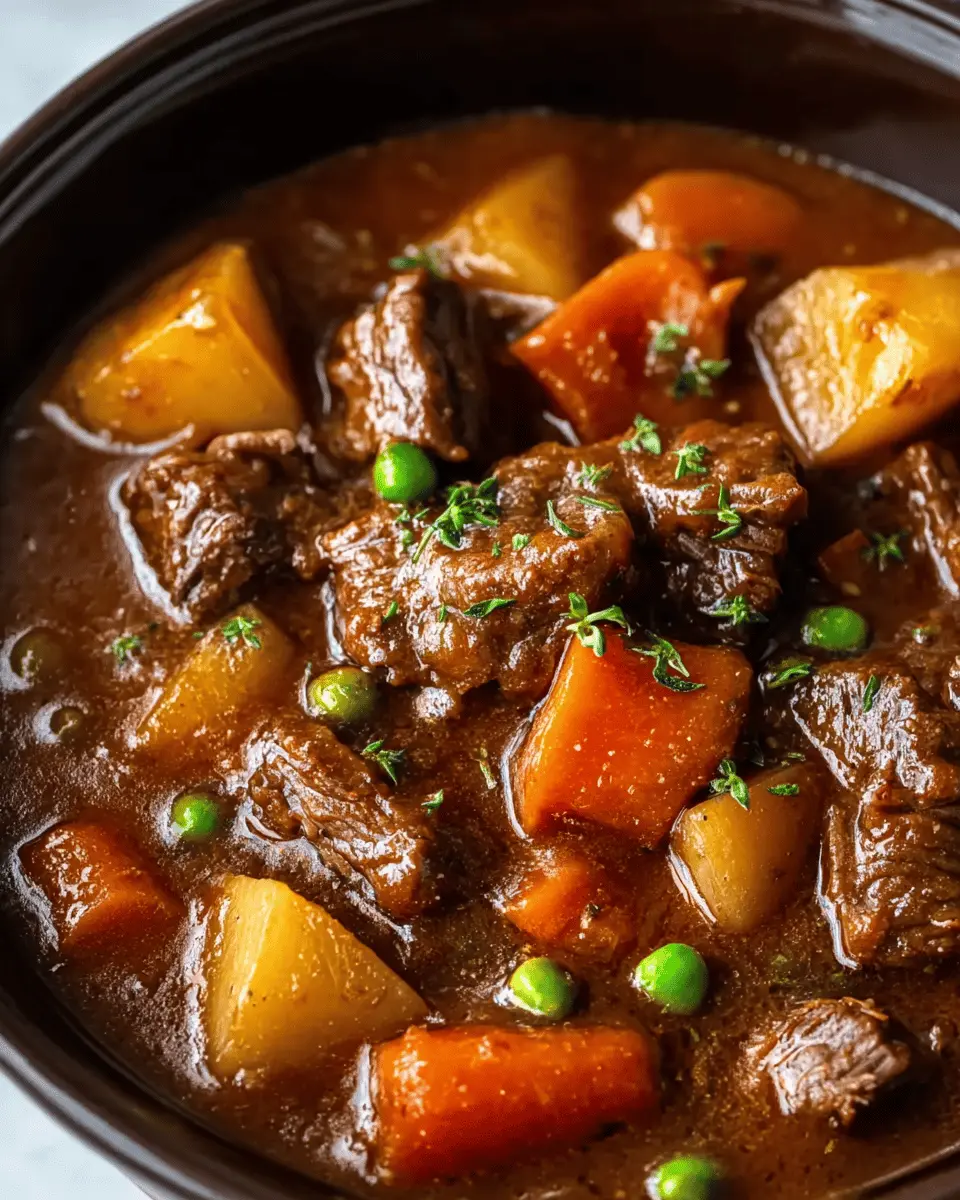 Finally, once your stew reaches the perfect consistency, swirl in 2 tablespoons of cold butter for a creamy finish, a technique known as “Monter au Beurre,” which means to mount with butter in culinary terms. For an extra touch, consider adding a few drops of Gravy Master for a richer color. Serve your hearty wholesome crockpot beef stew hot, and watch your friends and family dig in. Enjoy this comforting meal, perfect for any occasion!